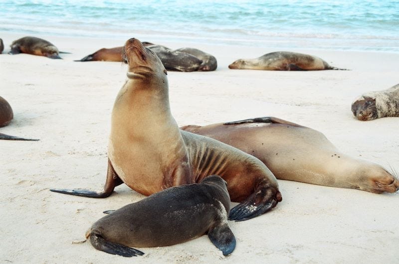 Am dritten Tag ergattert Jochen ein Boot – es folgen die sieben schönsten Tage seines Lebens. Mit dem Boot geht es von Insel zu Insel und ein fantastisches Naturerlebnis folgt auf das nächste. Das schönste ist, dass die Tiere keine Angst haben und man sich zwischen ihnen bewegt – die Seehunde sonnen sich mit ihnen am Strand, Albatrosse landen neben ihnen und Blaufuß-Tölpel begleiten fliegend das Boot. Er beobachtet Pinguine, die von Klippen springen und Flamingos, die im Wasser baden. Ein echter Trip of a lifetime!