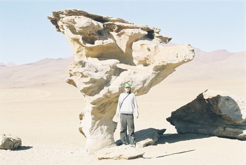 Weiter geht es zur Salar de Uyuni in Bolivien, die mit mehr als 11.000 Quadratkilometern die größte Salzpfanne der Erde ist – eine schneeweiße Ebene unter einer Schicht aus spiegelglattem Wasser, auf die die grelle Sonne brennt. Man sieht nichts als Weiß bis zum Horizont. Als sie an der Isla Incahuasi ankommen, bekommt es Jochen am Magen (die Mayonnaise war’s). Der Weg zum Dorf Uyuni über Schotterpisten wird für ihn zum echten Höllentrip, bis er eine gesamte Woche im Krankenhaus versorgt wird.