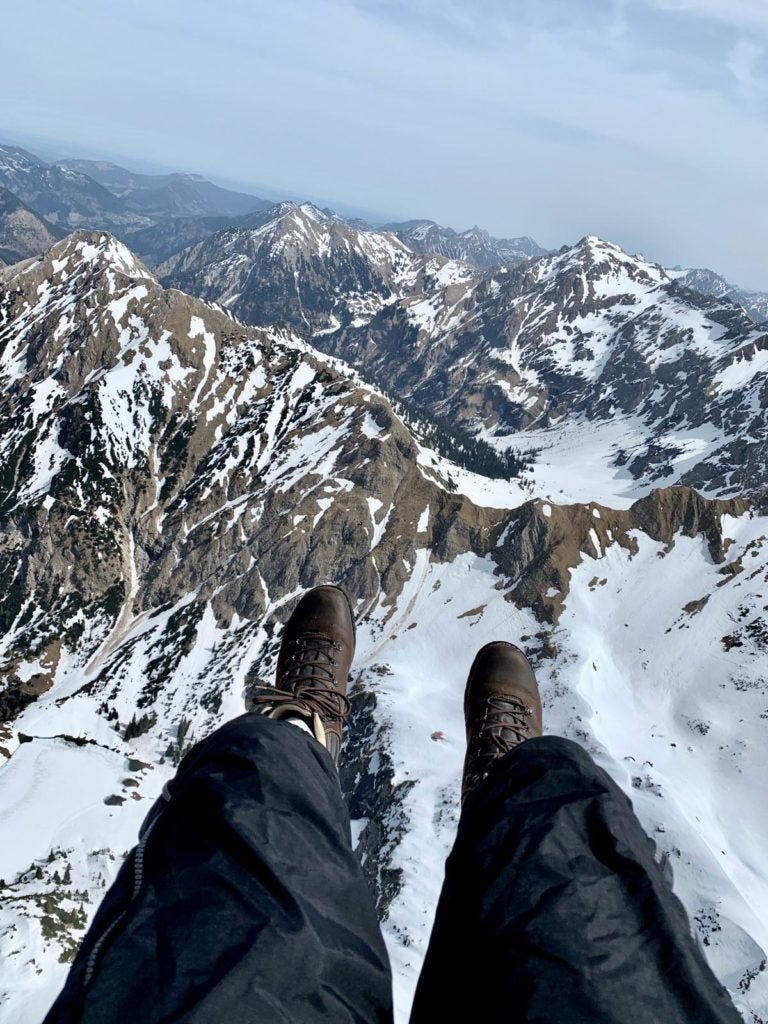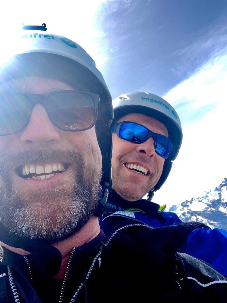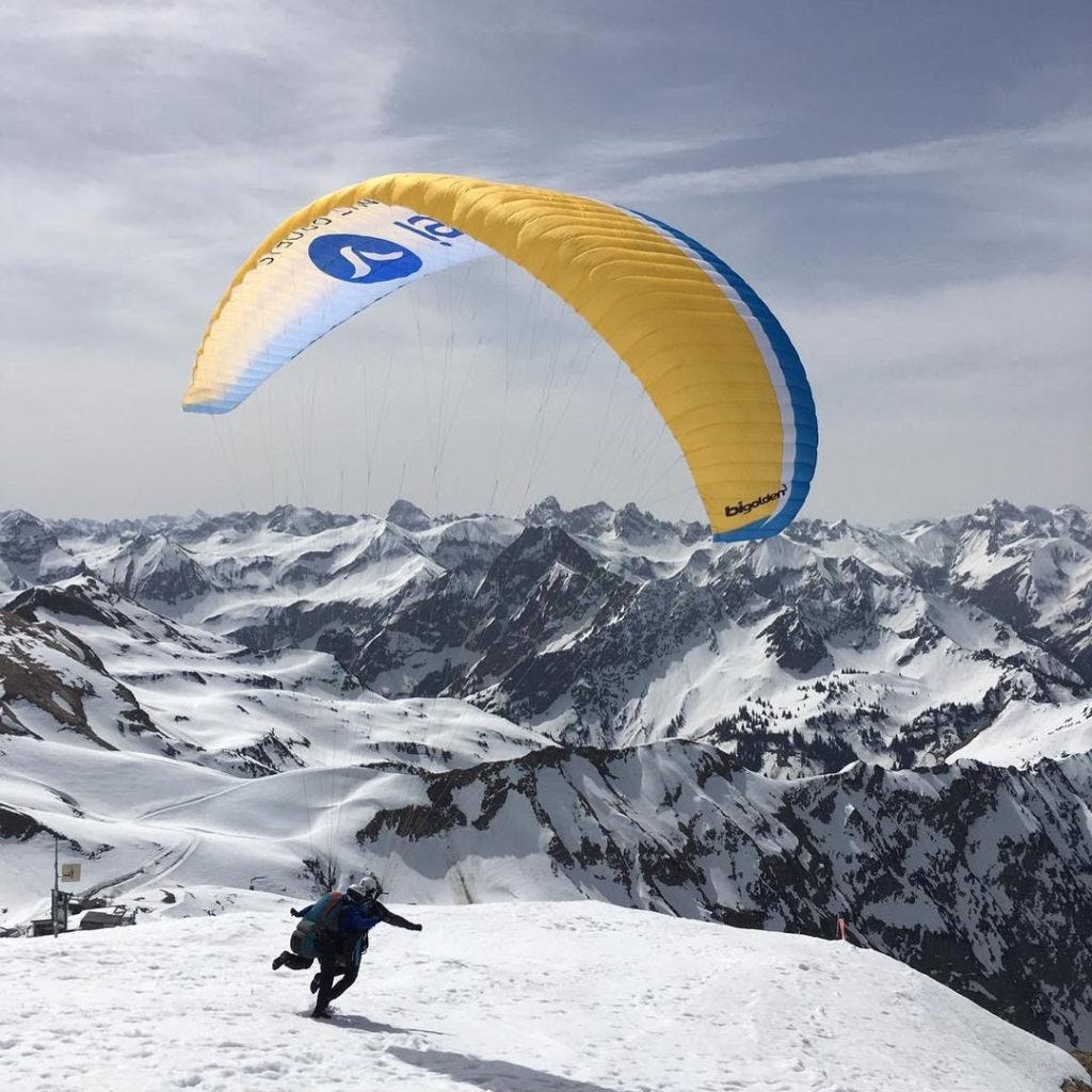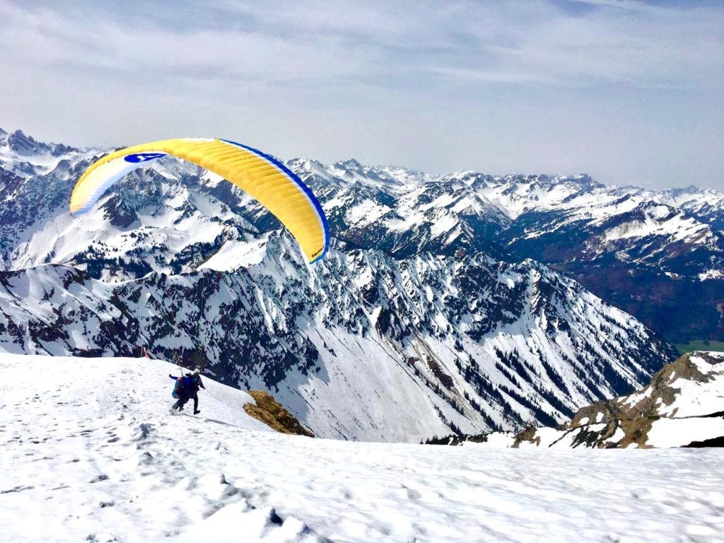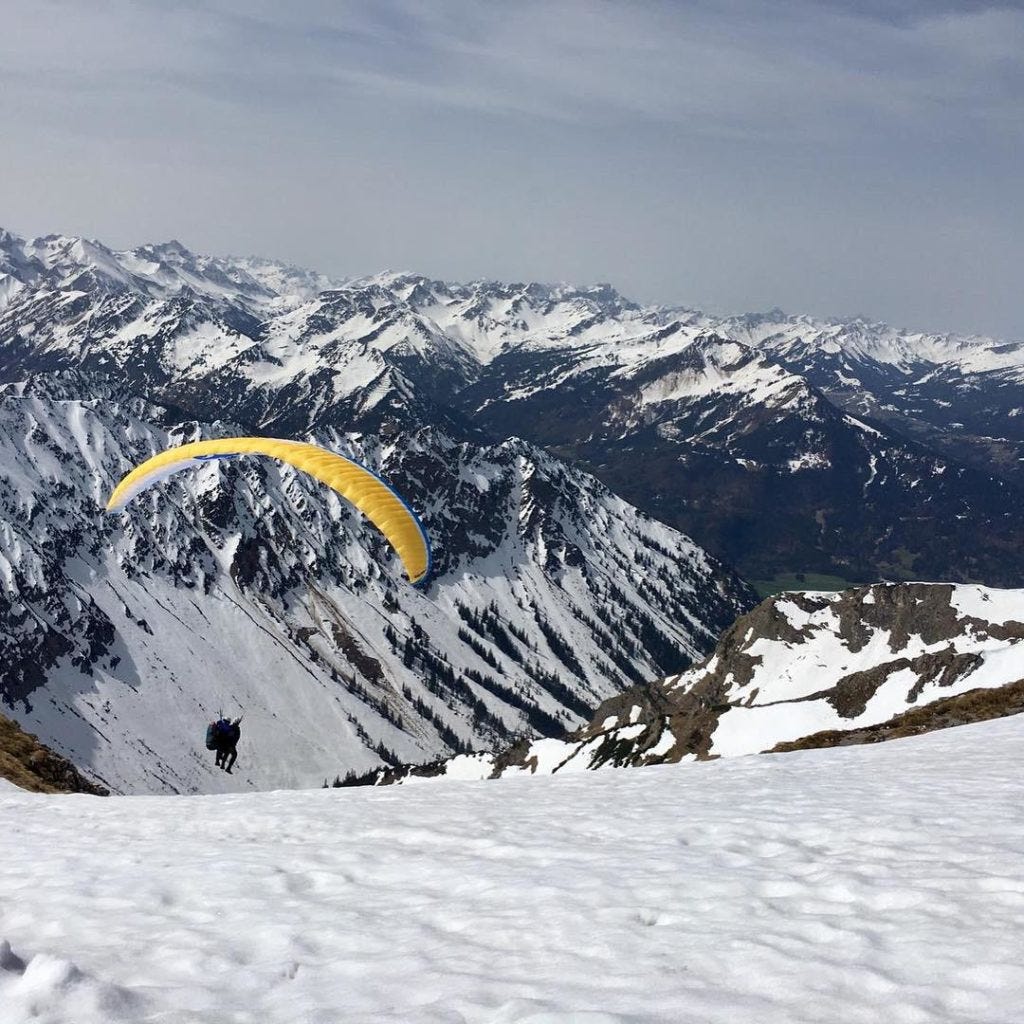 Michaels Erlebnis unter’m Gleitschirm hätte perfekter wohl nicht laufen.. also.. fliegen können: sanfter Start, sanfte Landung, unbegreiflich schöne Aussichten, und zwischendurch in Begleitung eines Adlers! Wow.