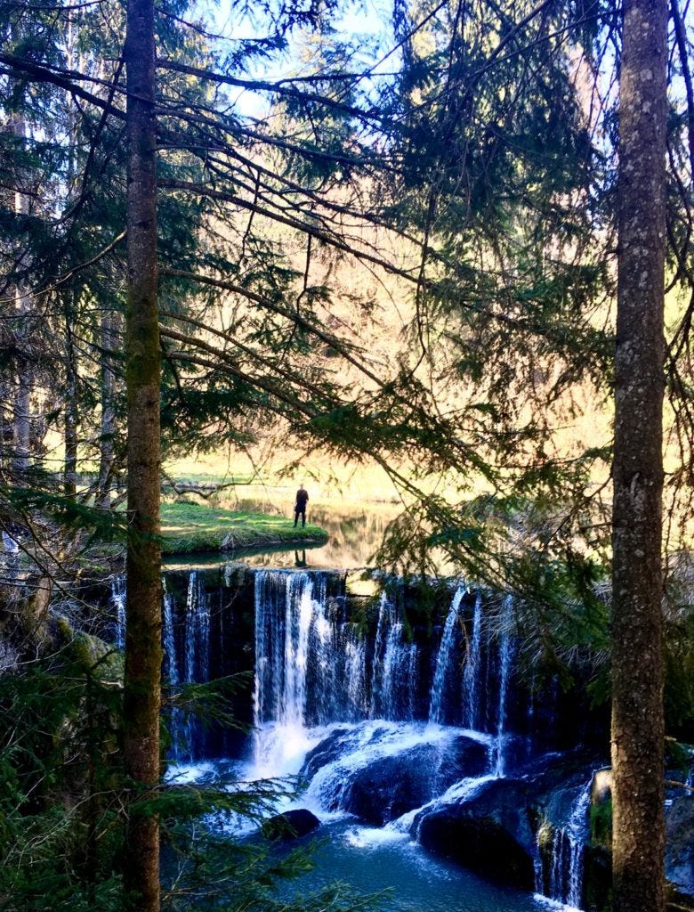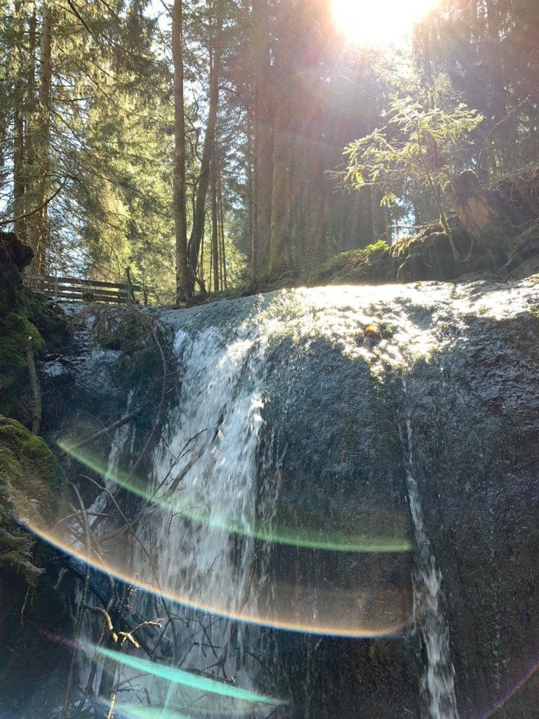 Wieder abseits der Stadt lautet Michaels ultimativer Spezial-Geheimtipp, auf den er selbst nur durch Zufall gestoßen ist: Der Geratser Wasserfall bei Oy. Klingt schon ganz verzaubert! Mitten in einem kleinen Wäldchen taucht plötzlich ein ganz einzigartiger Wasserfall auf, der aus dem Zusammentreffen zweier Bachläufe entsteht.