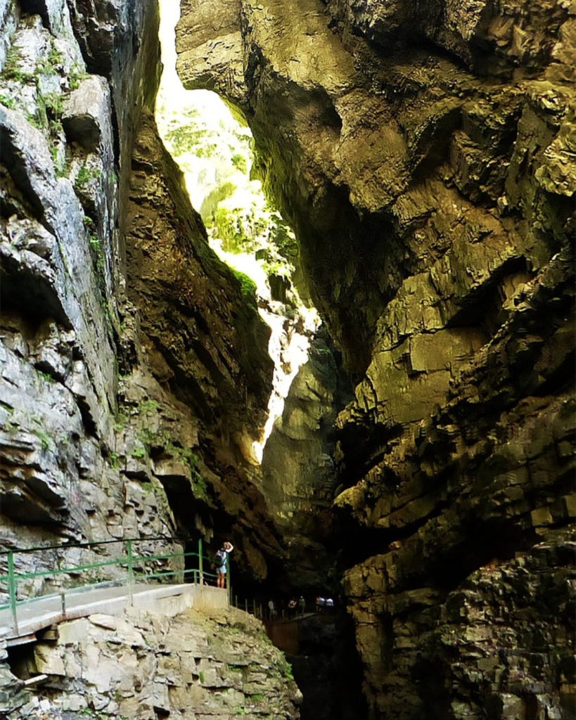Eins von Michaels Highlights: Die Breitachklamm bei Oberstdorf im südlichen Allgäu. Mit 150 Metern ist sie die tiefste Felsenschlucht Mitteleuropas! Über Stege und Brücken streift man durch unwirkliche Szenerien, umgeben von uraltem Gestein. Unter den Füßen stets rauschendes Wasser, das immer wieder kleine Regenbögen in die Luft zaubert. Während das Zusammenspiel von tiefen Schluchten und Wasser im Sommer für eine angenehme Kühle sorgt, hängen im Winter mächtige Eiszapfen vom Gestein herab und verwandeln die Klamm in eine magische Märchenkulisse. Michaels Tipp: früh morgens hin. Und im Winter unbedingt die Fackel-Nachtwanderung mitnehmen!