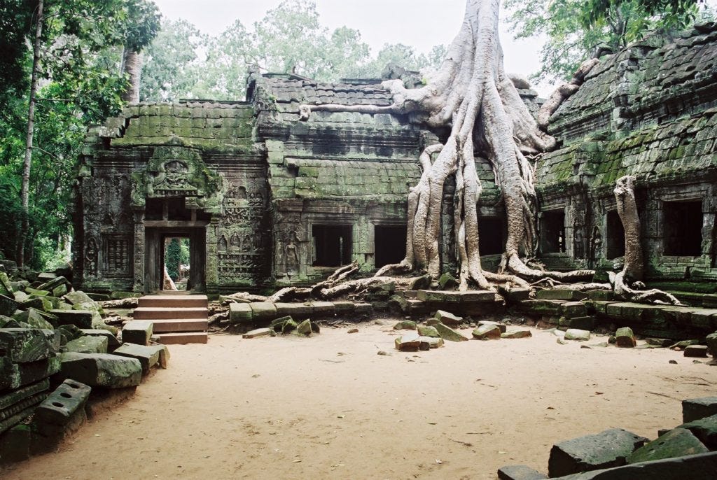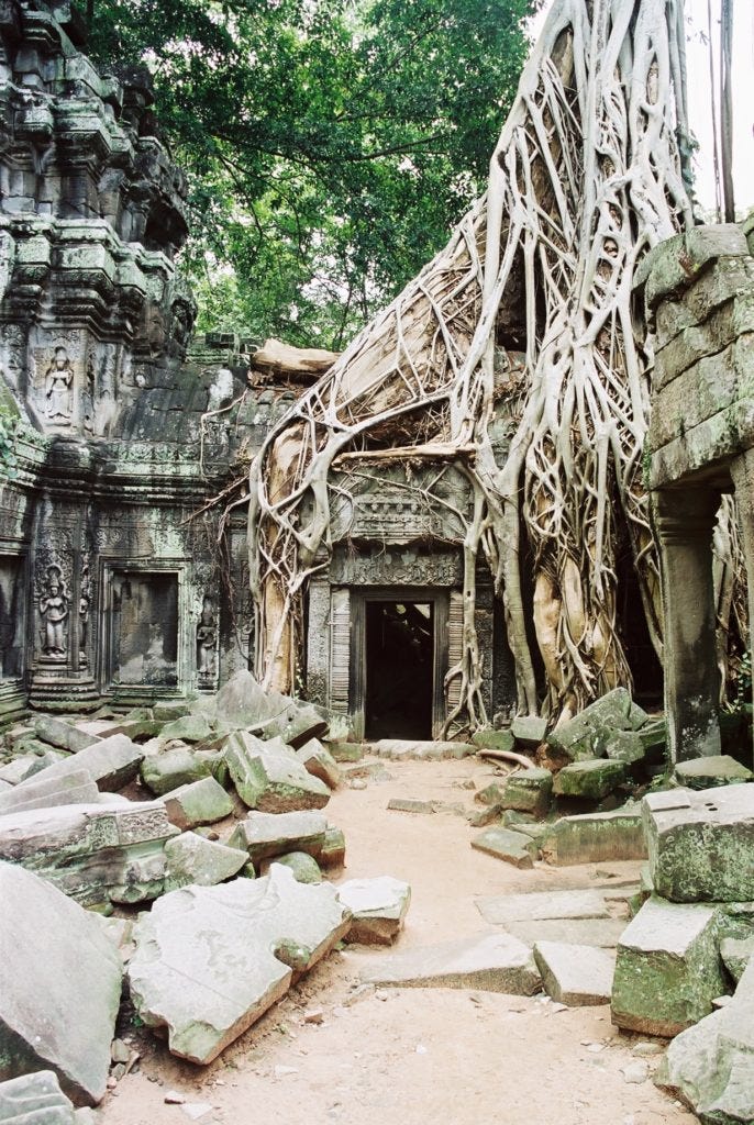 Ta Prohm ist für viele Menschen der beeindruckendste Ort. Hier sieht man, wie die Natur, der Dschungel, sich ihren bzw. seinen Platz unbeirrt und irgendwie fernab der Zeit zurückerobert. Auf den Jahrhunderte alten, grünlich verwitterten Gebäudekomplexen wachsen riesige Bäume, deren Wurzeln sich durch die Gemäuer hindurch ihren Weg ins Erdreich suchen. Fast schon surreal.