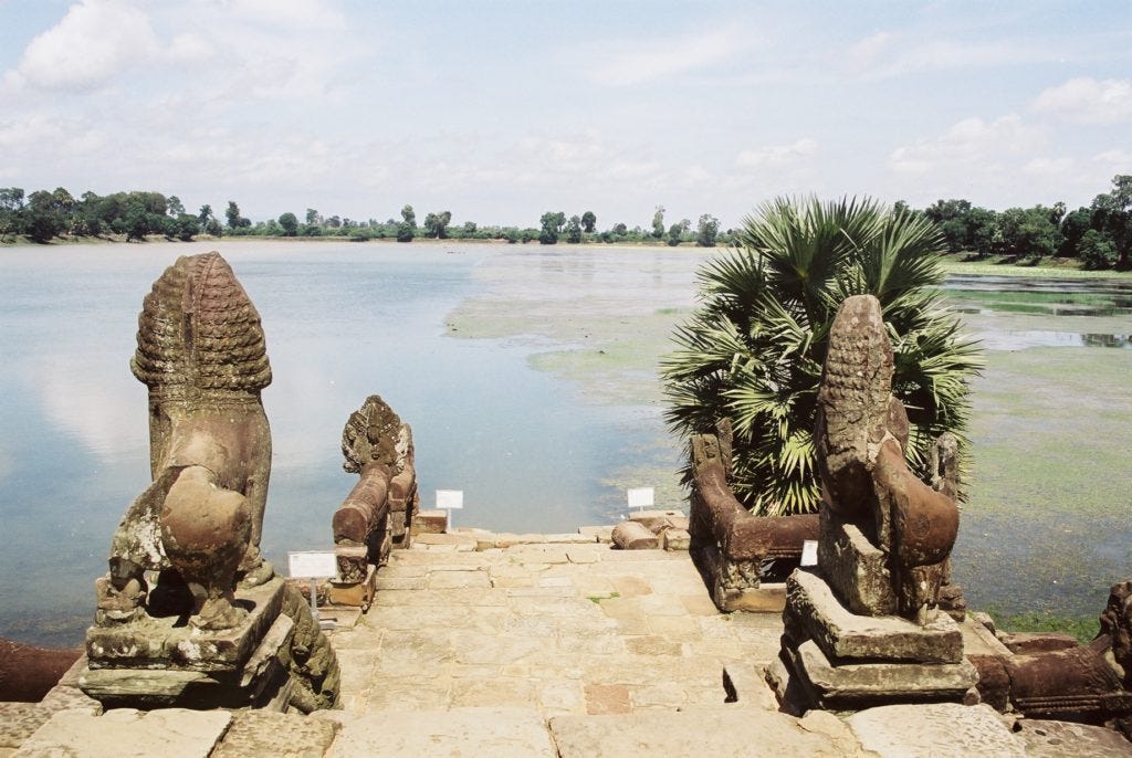 Die populärste Anlage ist Angkor Wat. Sie ist umgeben von einem Wassergraben, der für die Khmer damals sowohl rein praktisch, als auch spirituell von Bedeutung war. Direkt vor der Anlage befindet sich außerdem ein Gewässer, deren Spiegelung vor allem im dunstigen Morgenlicht einen unvergesslich magischen Anblick bietet.