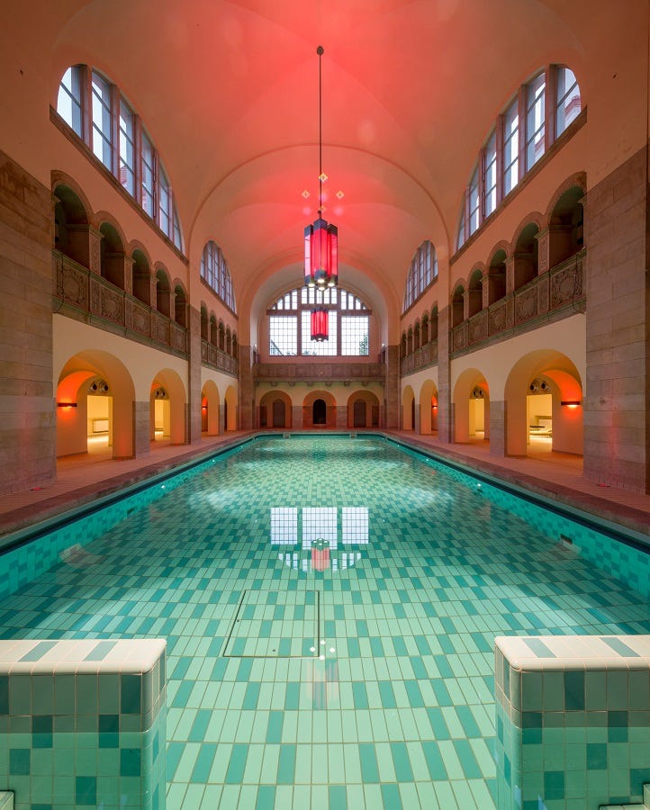 I visit a monumental Hideaway with enormous grandeur, the old Stadtbad – public bath – dating from 1902. In 2011, the owners of the Language Centre behind it seized the opportunity to restore the bath and breathe new life into the building. A huge challenge which resulted in a beautiful hotel with a huge indoor swimming pool which can also be transformed into a multi-purpose ballroom.