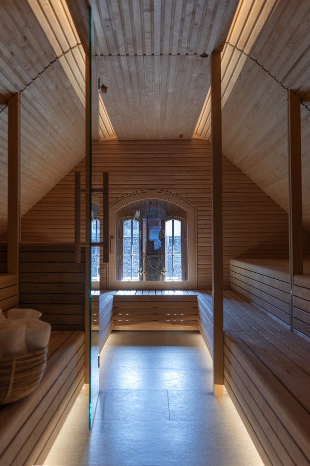 The former cells are now rooms with the original cell doors still intact but ingeniously insulated and integrated. And they are far from spartan: comfi beds, spacious bathrooms and lovely toiletries from St Pauls collection by Frama. There is a cosy living room for hotel guests, a patio garden, an oasis of calm in the busy city. You can use the spacious sauna and a pool is being built on the roof terrace.