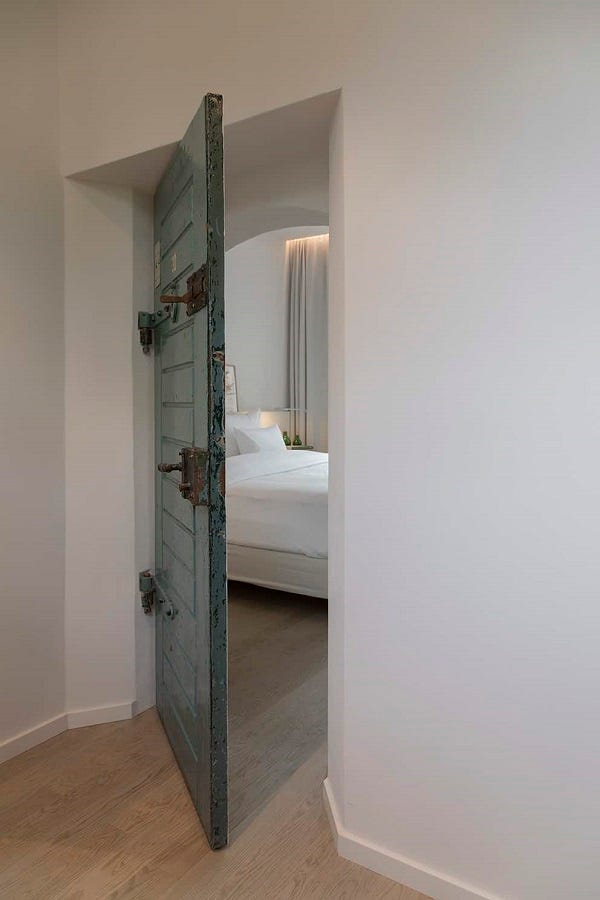 But the biggest surprise is the imposing Hideaway I visit. A 120-year-old women’s prison with court building has been transformed in 11 years (!) by a family of architects into a fantastic minimalist design hotel. Eye-catching. And what work has been put into keeping the soul of the building intact but making a comfortable and beautiful hotel.