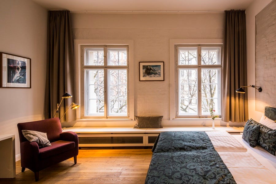 Always good to be back in Berlin. I love this city so much! This time I am visiting two Hideaways, in different districts of the city. In both cases it is a special and historical building which has been transformed into a fantastic hotel, upcycling to the max.