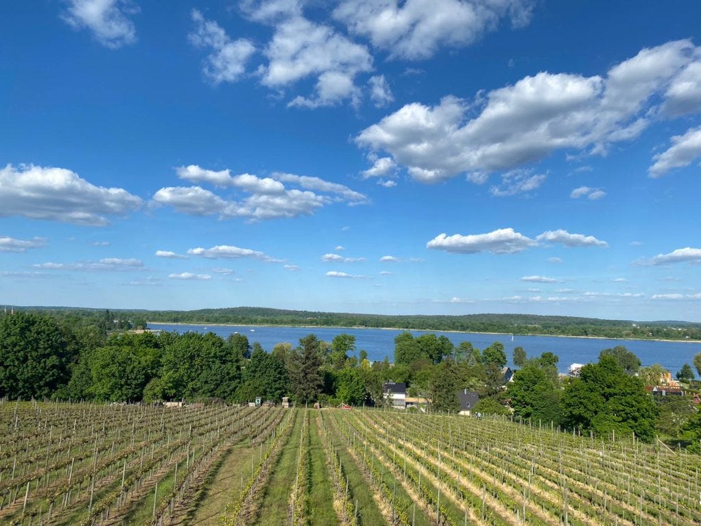 Nächste Station: Werder an der Havel. Schon wieder so ein unverschämt märchenhaftes Fleckchen Erde! Eine tolle Altstadt, Auen und wieder: ganz viel Wasser. Und dann wird’s nochmal irgendwie exotisch. Ja, das Havelland ist ein traditionelles Obstanbaugebiet. So weit, so lecker. Was allerdings auch dazuzählt: Wein! Und das hätte unser „P(f)älzer Bu“ Michi nun wirklich nicht erwartet, hier oben, so nah an Berlin. Da kamen teilweise echte Heimatgefühle auf. Ganz oben gab’s sogar einen Aussichtsturm, der einen einmaligen Blick über Weinberge, Wälder, Wasser bot. Natürlich wurde der Wein auch auf die Probe gestellt… Ob unserem Weinkenner Michael der brandenburgische Sauvignon Blanc und der Kernling von der Havel wohl gemundet haben?