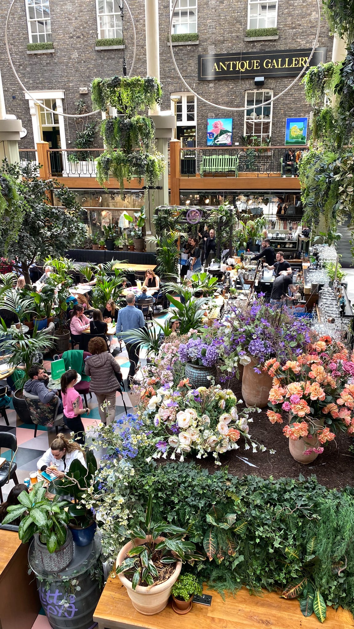 Nicht weit von der Statue befindet sich das Powerscourt Townhouse Center. Im wunderschönen Innenhof kann man bummeln, shoppen oder, wie Michael, eine vierte Mahlzeit vertilgen und entspannt das bunte Treiben beobachten.