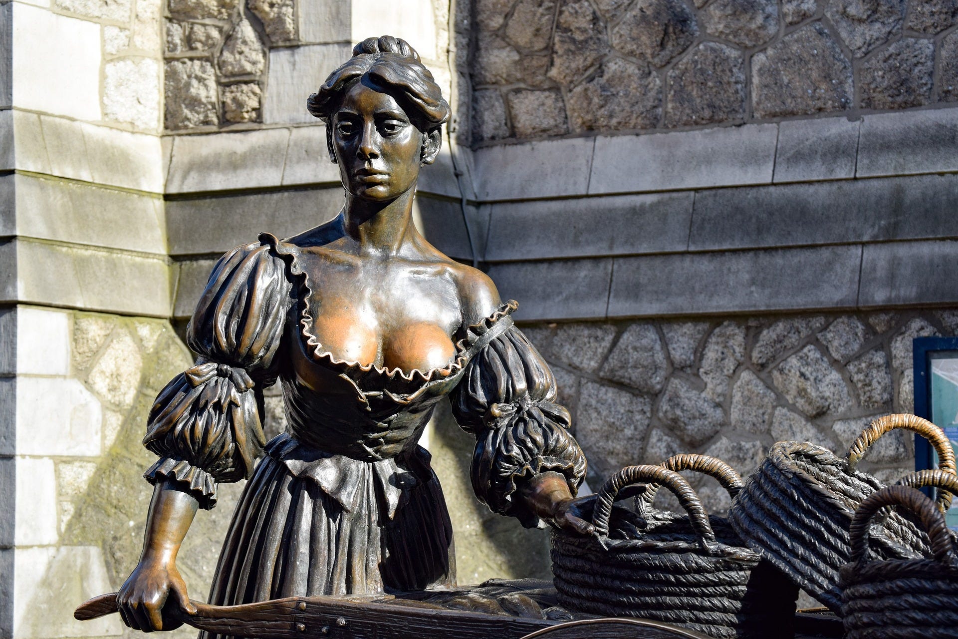 Eine berühmte Legende in Irland handelt von Molly Malone. Die tragische Geschichte der jungen Fischhändlerin, die der Erzählung nach eines der schönsten Mädchen in Dublin im 17. Jahrhundert war, wird in einem volkstümlichen Lied erzählt. Es ist weit über die Grenzen Dublins hinaus bekannt und gilt sogar als inoffizielle Hymne Irlands. Wie zuvor das Trinity College hat Michael auch das Denkmal von Molly Malone zufällig entdeckt. Es steht vor der St. Andrew’s Church. Michael hatte Glück, denn als er vorbeikam spielte gerade ein Straßenmusiker besagtes Lied.