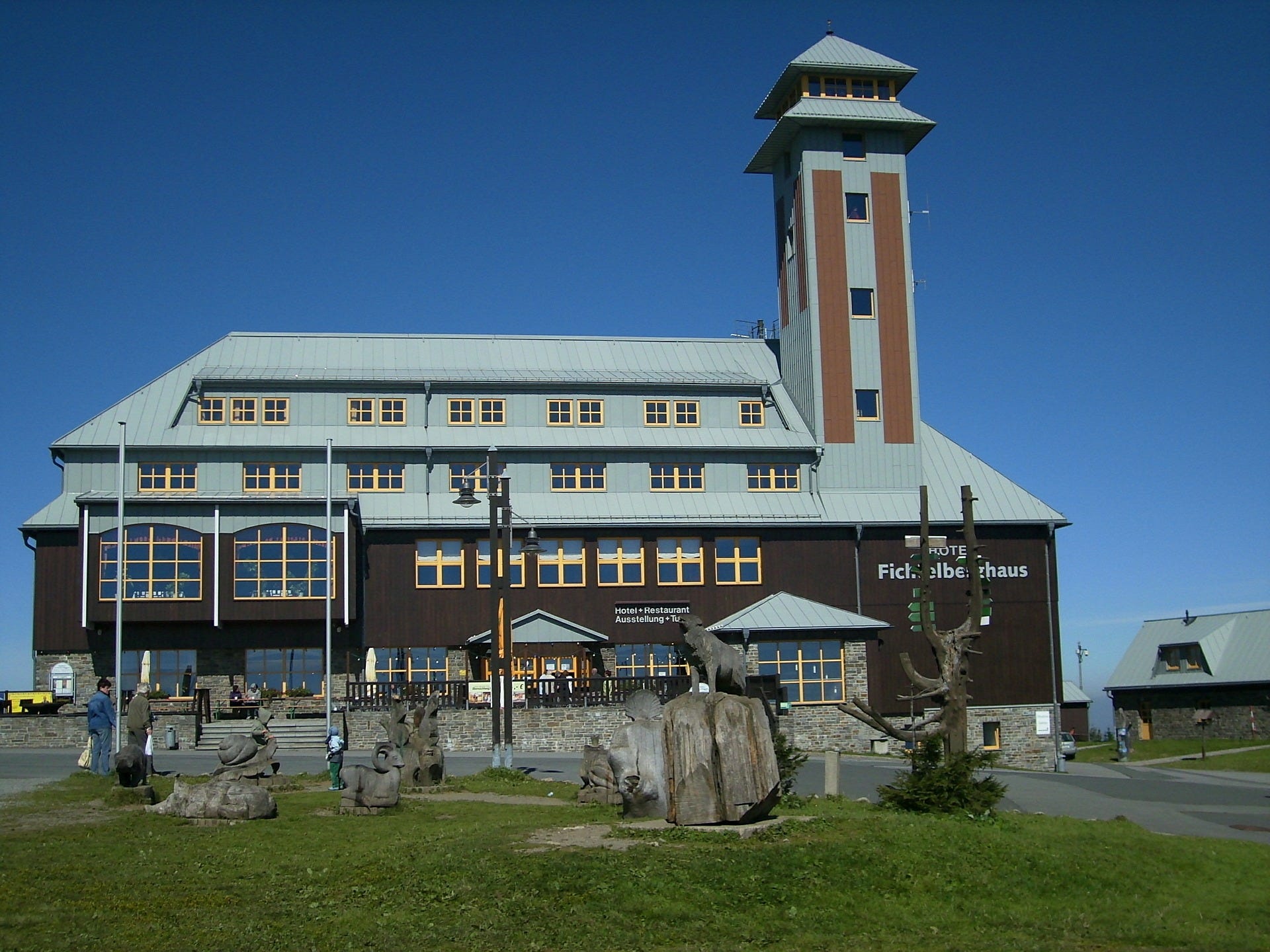 Die frische, klare Luft hat Michael sofort so beflügelt, dass er noch höher hinauswollte. Also nichts wie rein in den Lift und ab nach oben. Dort angekommen hart er neben der fantastischen Aussicht – bei gutem Wetter kann man bis nach Leipzig gucken! – das Fichtelberghaus bestaunt. Nach ein bisschen Schlenderei ging’s nicht etwa wieder mit dem Lift talwärts, sondern mit der sogenannten „Fly-Line“ – eine ca. 1,5 Kilometer lange Seilrutsche – mit Kurven und durch Baumwipfel hindurch. Kein Achterbahn-Feeling, aber durchaus ein kleiner Nervenkitzel – für Groß und Klein. Für’s restliche Stück nach unten hat Michael – gefangen im Geschwindigkeitsrausch – dann die Sommerrodelbahn genommen. Bekanntschaft hat er außerdem noch mit dem sogenannten „Monsterroller“ gemacht, der dann auch gleich in den Plan für den nächsten Tag aufgenommen wurde.