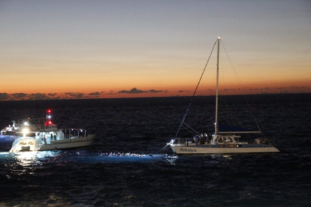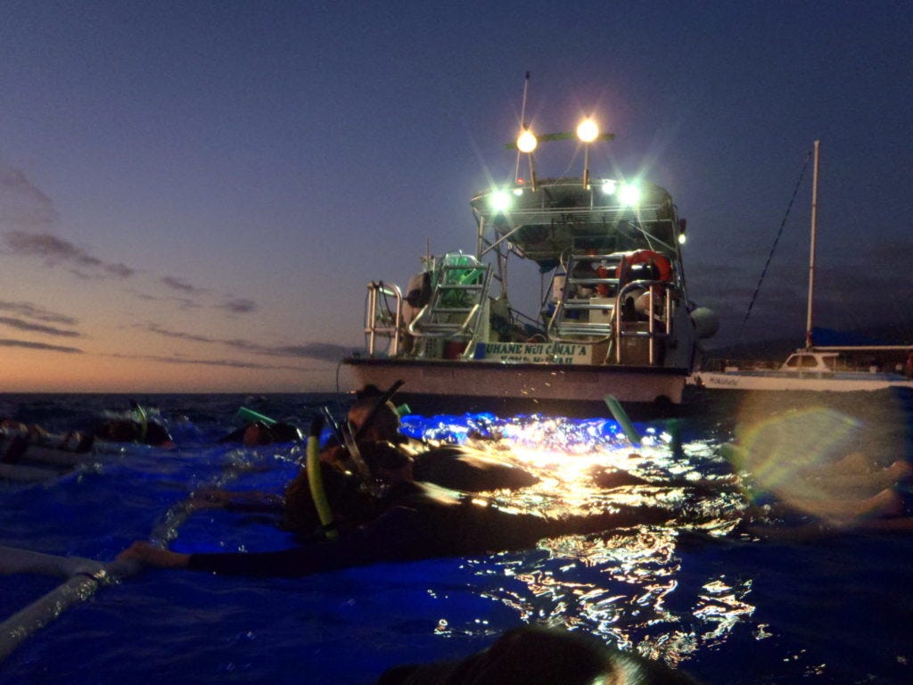 Manchmal packt unseren Jochen ja eine, sagen wir, etwas skurrile Form der Abenteuerlust. So auch auf Hawaii Island. In der Abenddämmerung – einen Tag später als geplant, denn zuvor wars zu stürmisch – ging es los. Allein schon die Anfahrt war geprägt von einer magischen Stimmung, die sich nur noch steigern sollte. Dann ging alles ganz schnell: das Boot strahlte ins Wasser, wodurch Plankton geködert wird, was wiederum die majestätischen Wasserwesen anlockt. Und so kam es denn, dass Jochen in die Tiefe des nächtlichen Ozeans blicke und ihm immer wieder Mantarochen mit weit aufgerissenem Schlund entgegenschwebten. Da kann man vor Aufregung schon mal ein bisschen – oder auch ein bisschen mehr – Meerwasser schlucken. Eine kuriose Mischung aus Angst, Ehrfurcht und vor allem Glück. Eine wundervolle Naturerfahrung, die alles andere, alles Negative in den Schatten stellt, alles überstrahlt. Reisemomente…