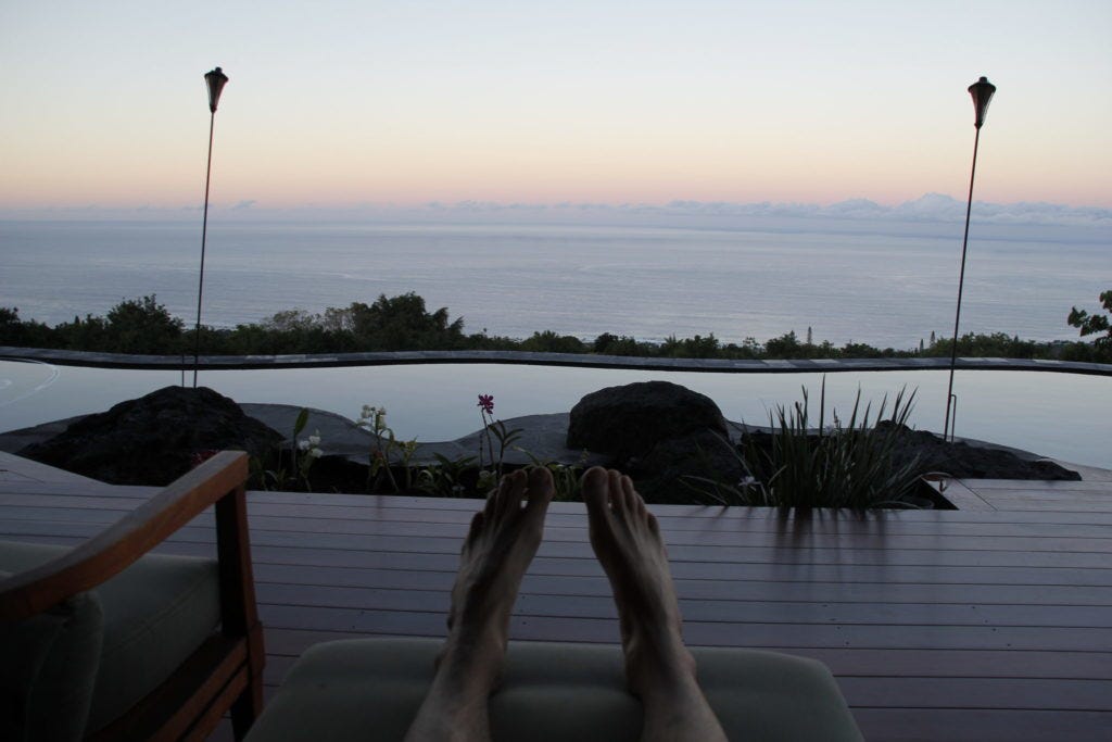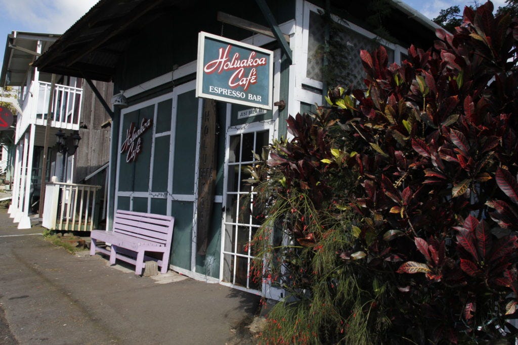 Jochens Unterkunft lag nicht weit entfernt vom Meer, ein wenig den Hang hoch, mit Blick auf den Pazifik und am ersten Abend auf einen „tief-violetten Sonnenuntergang“. Wie schon gesagt – das dortige B&B-Netz nutzen lohnt! Jochen rät außerdem dazu, Holualoa zu besuchen. (Und an dieser Stelle: Unbedingt in dieser Folge anhören, wie Jochen versucht, „Holualoa“ auszusprechen. Bringt Freude.) Jochen beschreibt Holualoa als kleinen, perfekten, idyllischen Ort mit netten Leute, kleinen Lädchen, charmanten Restaurants und Cafés wie das Holuakoa Gardens and Cafe.