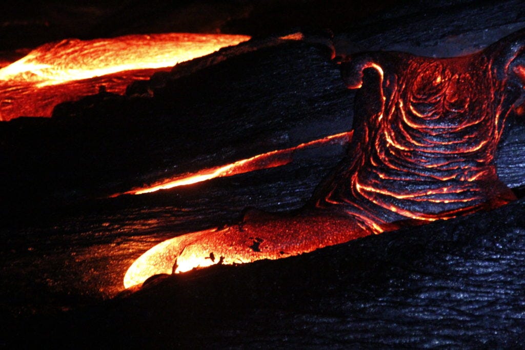 Noch völlig euphorisiert fuhr Jochen direkt im Anschluss weiter ans nächste Ziel. Mit dem Auto durch schönste Landschaft –, die irgendwann rötlich zu glimmen begann – und zwar aufgrund der Lava im Süden von Big Island. Am nächsten Tag ging es dann mit einem Einheimischen als Guide stundenlang durch majestätische Natur über endlos scheinende Lavafelder, im Hintergrund immerzu das Rauschen des Pazifiks. Und als es dann schon allmählichen dunkel wurde, taten sich diese tief roten, langsam fließenden, unendlich heißen Lavaströme vor Jochen auf – „ein absurder, wunderschöner Moment“, wie er sagt… der dann fast noch getoppt wurde durch den Anblick dicker Lavaströme, die über eine Klippe hinunter ins Meer fielen… „das Innerste der Erde trifft auf den Ozean und bildet neues Land“. Wie unfassbar muss es sein, das mit eigenen Augen zu sehen… Jochens Soundtrack dazu lieferte die Band Cave In. Warum, und noch viel viel mehr, erzählt er Euch in dieser Folge.