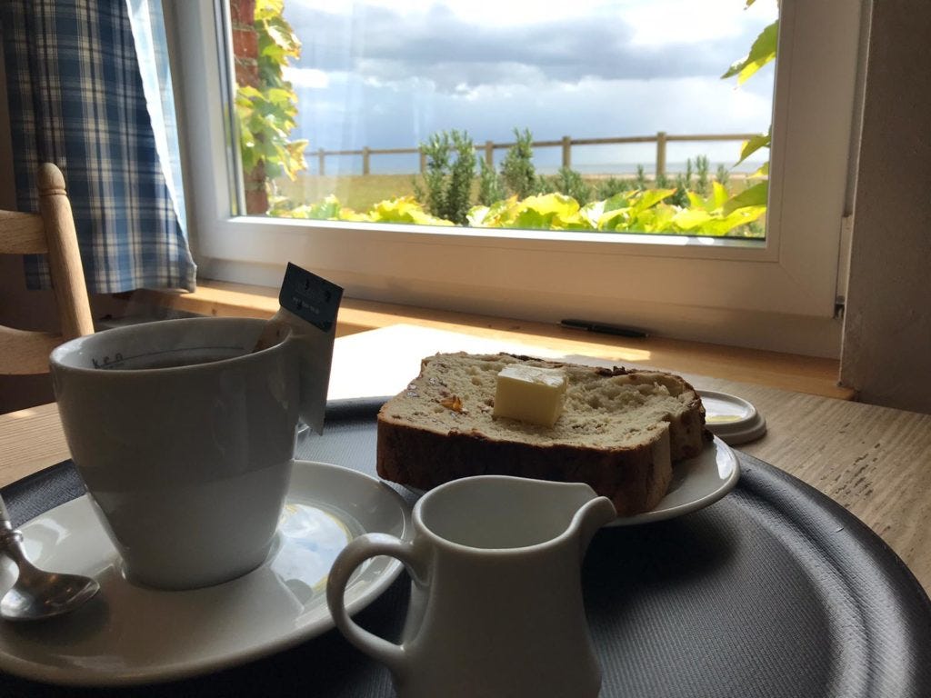 Direkt nach seiner Billrifferfahrung hat Jochen auf Juist sein Lieblingscafé gefunden: Die Loogster Stuv. Leckerste, hausgemachte Kuchen und Torten, dazu echter Ostfriesentee mit Kluntje und Sahne in gemütlichster Atmosphäre. Perfekt. Außerdem einen Besuch wert: Das Lüttje Teehuus und die Domäne Bill.