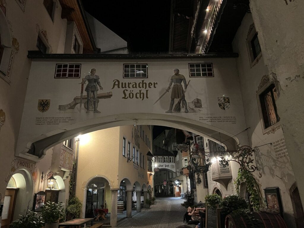Zurück in der Altstadt wartet ein kulinarisches Erlebnis der anderen Art: Im traditionsreichen Auracher Löchl versteckt sich zwischen zwei Häusern das wohl kleinste Brückenrestaurant der Welt. Ein einziger Tisch, Kerzenlicht, ein Plattenspieler, Holz, das Geschichten erzählt. Draußen Kopfsteinpflaster, drinnen Fünf-Gänge-Menü – und die Welt bleibt für ein paar Stunden stehen. Wer hier isst, hat Kufstein ganz für sich.