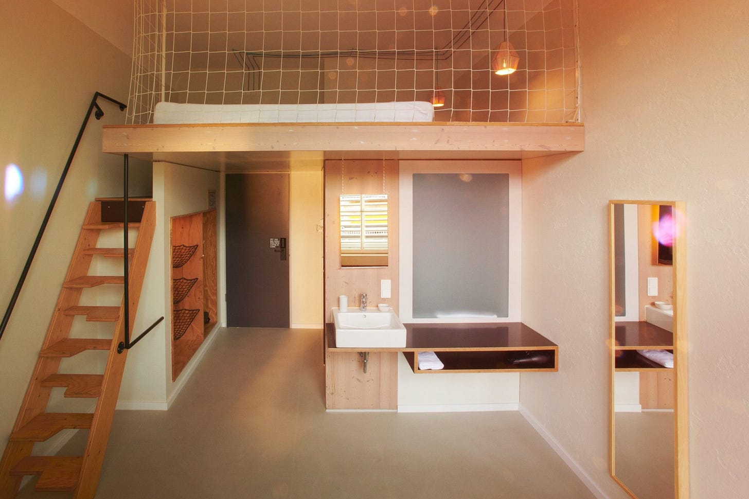 And the rooms! They’re all different and a lot of creativity went into decorating them. For instance, I spent the night in a spacious loft room with a large double bed on the mezzanine and a downstairs sleeping couch. And it had a great shower! But the hotel also has larger rooms where you can stay with family or friends, varying from a room with four beds (the Band Room) to a room with six beds, two bathrooms and an enormous table (the Big One). And for a romantic getaway for two there is the Cosy Room.