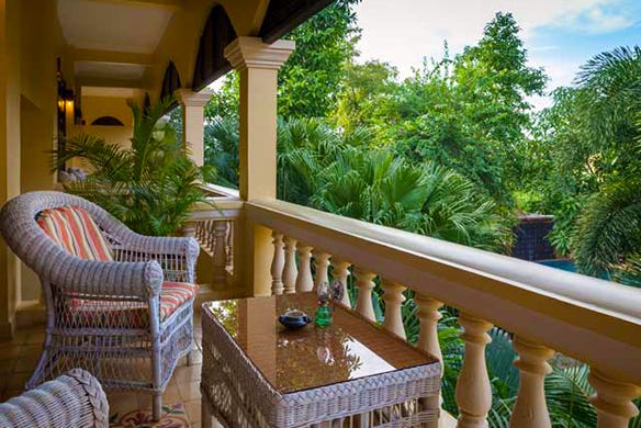 Boy, that’s promising indeed! Next, it is time for me to be taken to my room, a Junior Suite. To get there, we cross the spacious and beautiful garden, which is wonderfully lush and full of colourful flowers. On our way, we pass the restaurant and one of the swimming pools (there turns out to be two pools, one of which is adults only). The room is a pleasant surprise as well: lovely spacious and comfortable. Again, everything has been considered: a minibar with complimentary bottles of water, coffee and tea-making facilities, a large balcony with oil lamp and mosquito coils, mosquito nets, an enormous rain shower, turndown service, etc.. I think I will be able to manage here for a while.