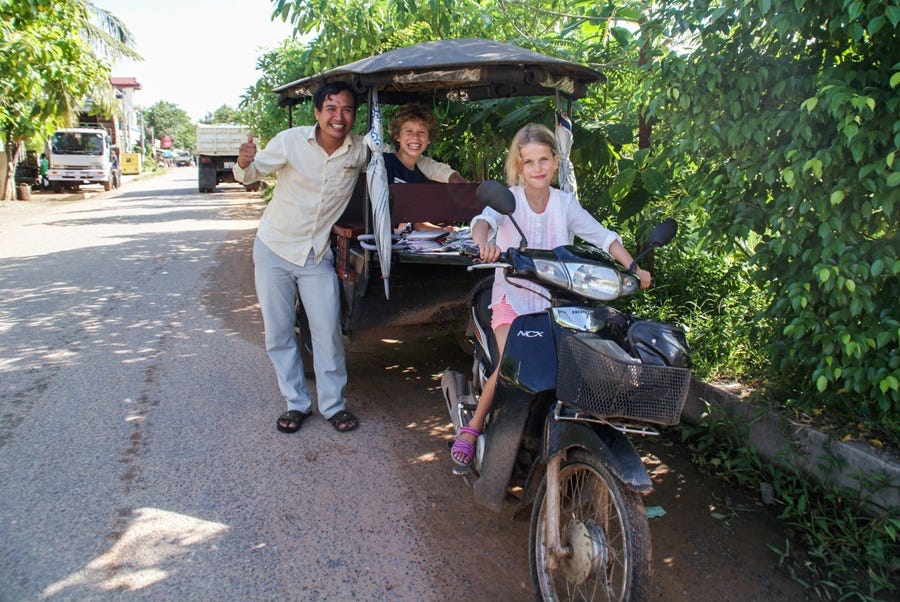 Mr. Pov is at my disposal from sunrise to 10 p.m. and can take me anywhere I wish to go in Siem Reap, Angkor Wat included. Such a brilliant idea! This Hideaway is located away from the city and my direct surroundings aren’t particularly inviting for a solitary trip… but there is no need for that, for now I have Mr. Pov, who knows the city like the back of his hand and who speaks perfect English!