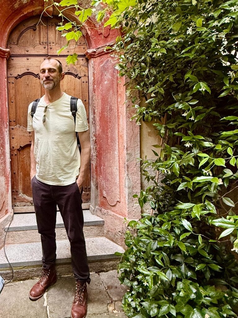 Carona war einst Heimat von Handwerkern, die am Mailänder Dom arbeiteten. Ihre wohlhabenden Nachfahren bauten Villen, die bis heute das Dorf prägen. In der Villa Carona, geführt von Jörg und Cornelia, genießt Michi hausgemachte Limonade im schattigen Garten.