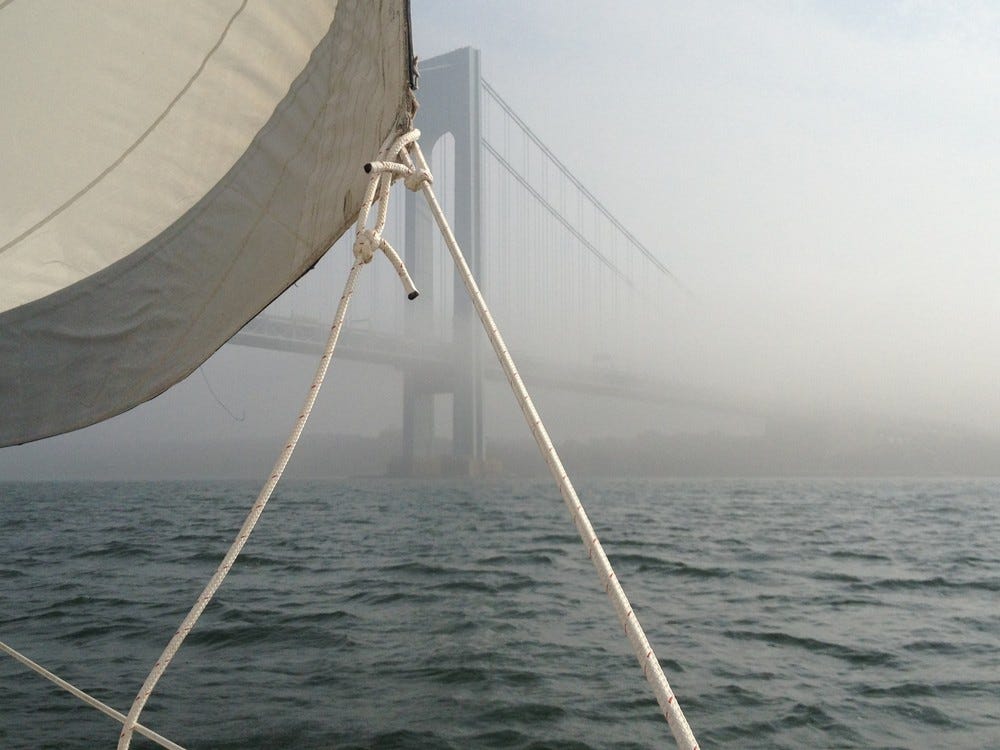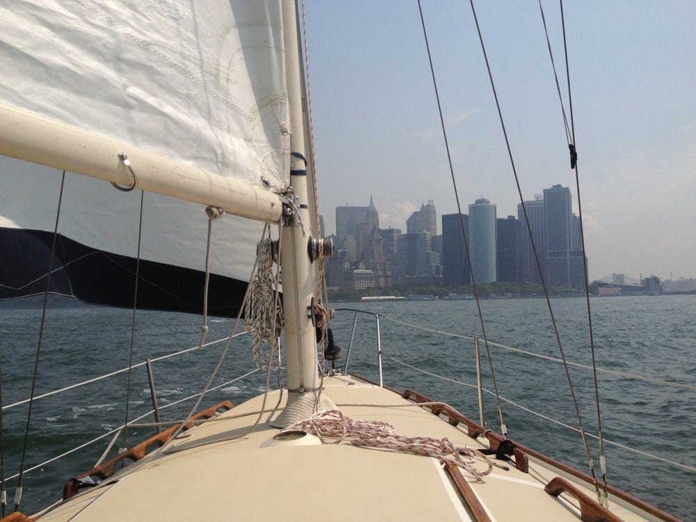 Wenn ich eins in New York gelernt habe, dann ist es, schnell zu entscheiden. Ich hätte nachdenken, abwägen, planen können, aber ich sagte: „Klar!“, als die neun Worte fielen: „Kannst du das Boot mit mir nach Manhattan bringen?“ Die Frage kam vom Besitzer eines zehn Meter langen Segelboots namens Sojourn, das gerade in einer Bucht weit draußen an der Grenze von Brooklyn und Queens lag.