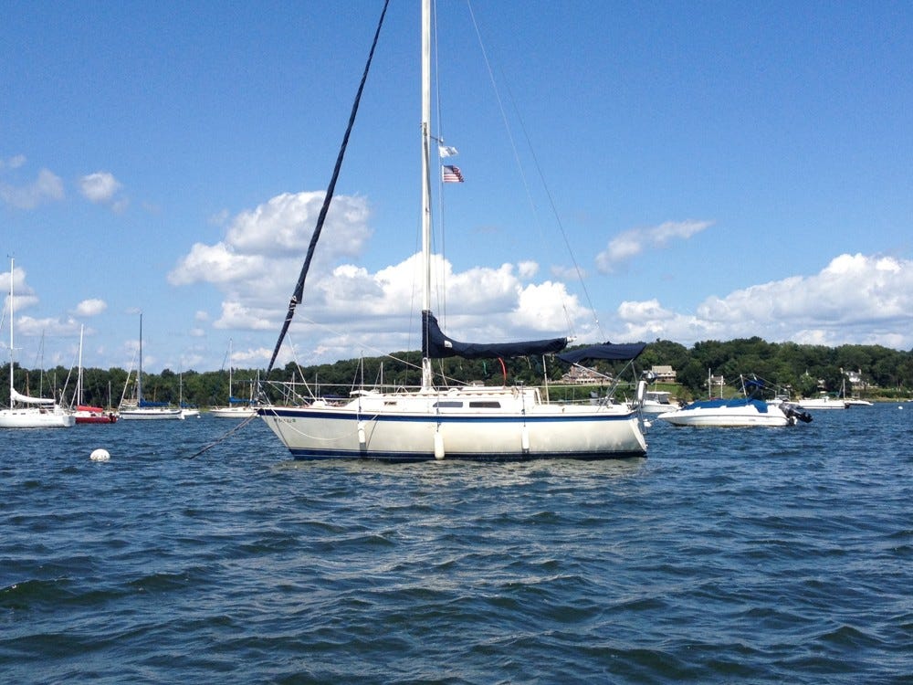Ich hatte ja keine Ahnung, dass diese Reise beinahe umgehend zu einem längeren Törn auf der Sojourn führen sollte und letztlich in das Dorf, in dem ich inzwischen wohne: nach Greenport. Mit dem Auto ist Greenport ungefähr zwei Stunden von NYC weg. Mit der Sojourn brauchen wir für die Strecke zwei oder drei Tage, je nach Wind, Wetter und Gemütslage.