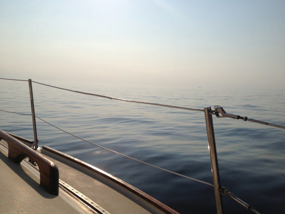 Die Strecke ließe sich durchaus binnen gut 24 Stunden bewältigen – bei steifer Brise sportlich gesegelt, mit abwechselnden 4-Stunden-Schichten am Steuer, rund um die Uhr. Aber die Sojourn ist keine Rennyacht, sondern das, was die Segelgemeinde „Dickschiff“ nennt; eher stabil als schnittig, nicht schneller als ein Fahrrad und damit wie gemacht für meine Vorstellung dieser Reisen: Ich wollte kein Rennen gewinnen, sondern buchstäblich den Weg zum Ziel machen.
