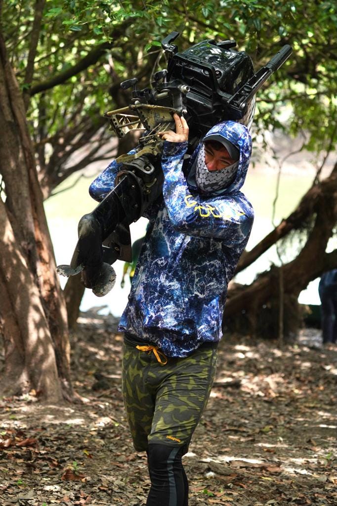 Wenn Marten über das Angeln spricht, bleibt verstaubten Klischees keinerlei Überlebenschance. Es geht vor allem um Naturverbundenheit und -schutz. Um eine nachhaltigere Denke und ganzheitlichere Einstellung gegenüber einem unserer Grundbedürfnisse: Essen. Seine Leidenschaft zum Angeln hat ihn darüber viel gelehrt, aus nächster Nähe. Und daraus sind wiederum Ideen entstanden – zum Beispiel die, aus Meeresmüll Klamotten zu fertigen. Und natürlich bringt ihn seine Liebe zum Angeln auch an die abgefahrensten (und nicht immer ungefährlichsten) Orte, etwa in ein kleines indigenes Dorf mitten im kolumbianischen Dschungel.