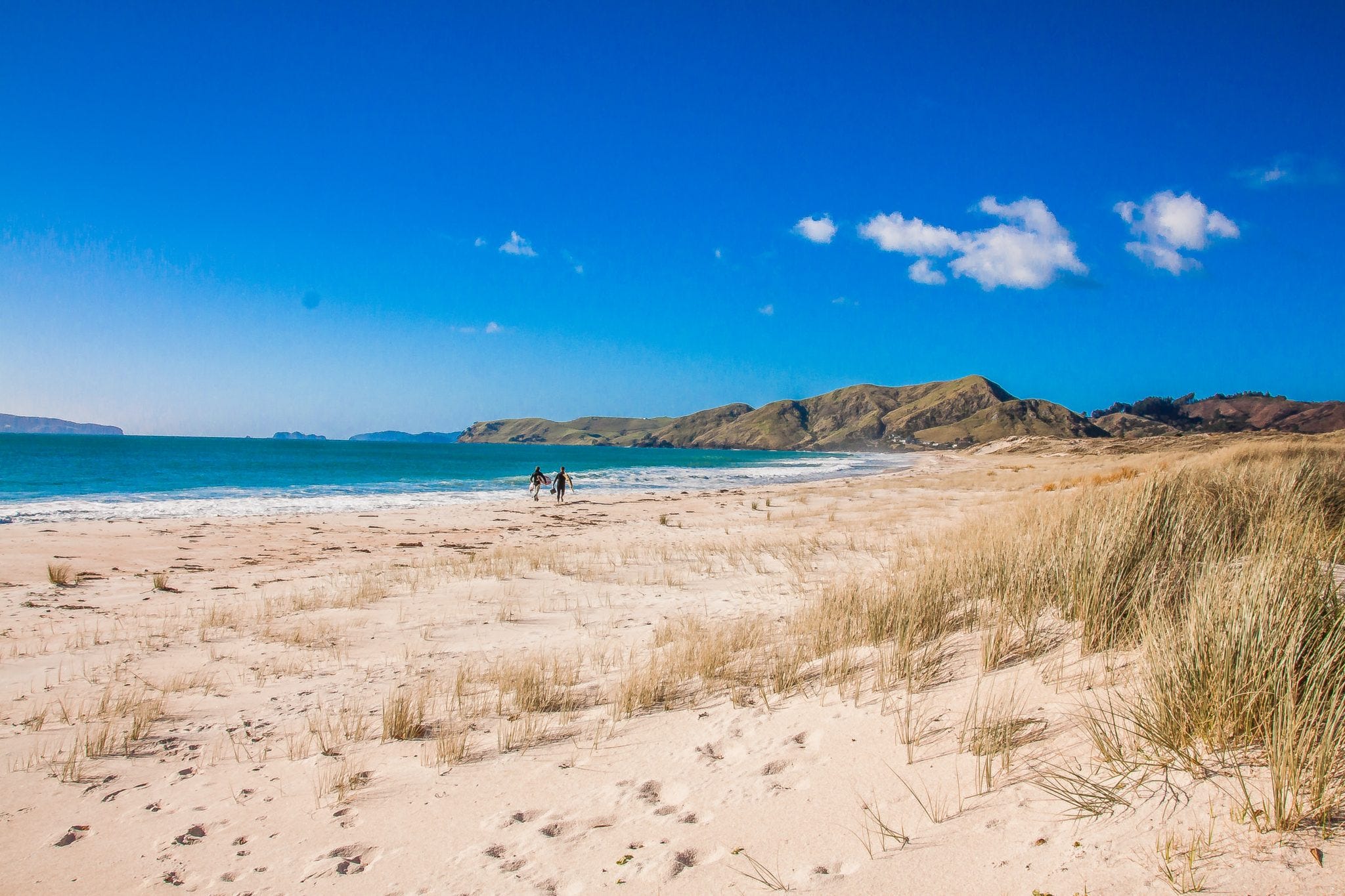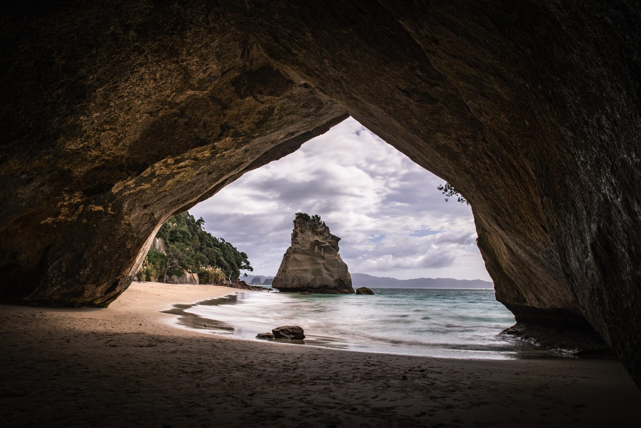Michael übernimmt den Osten und legt Euch dort die etwa zwei Stunden von Auckland entfernte Coromandel Peninsula ans Reiseherz. Hier gibts so viele – dazu auch noch, wie könnte es in Neuseeland anders sein, atemberaubend schöne – Strände, dass sie nie überfüllt sind. Unbedingt angucken: den Cathedral Cave, zugleich Eingang zur Bucht Cathedral Cove. Der Cathedral Cave ist ein natürlich entstandener Felsbogen aus hellem Kalksandstein. Man könnte es sich malerischer nicht ausdenken.