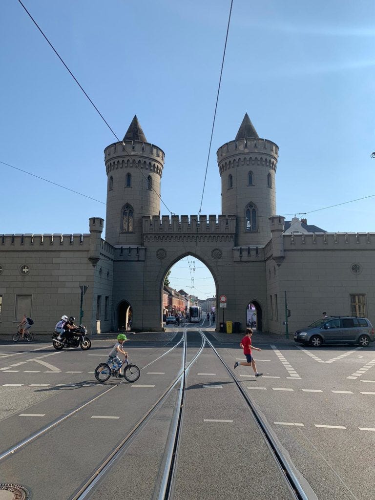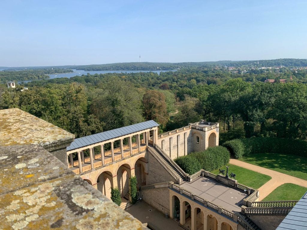 Filminteressierten sei natürlich ein Besuch im Filmpark Babelsberg empfohlen – super auch für einen Tagesausflug mit Kids. Aber auch abgesehen vom Filmpark kann sich der Stadtteil Babelsberg sehen lassen. Dass das weltbekannte Schloss Sanssouci auf dem Plan stehen sollte, ist kein Geheimnis. Michael hat sich außerdem noch einen Berg hochgekämpft: Unfassbare 76 Meter ragt der höchste Berg Potsdams, der Pfingstberg, aus dem Erdboden hervor, inklusive pittoreskester Aussichten, die Michael gedanklich fast in die Toskana zu katapultieren vermochten. Und weil Potsdam immer noch einen draufsetzt, steht oben das Aussichtsschloss Belvedere mit Kulinarik, Kunst, Kultur und mehr. Es muss also nicht immer Berlin sein. Auf nach Potsdam, verehrte Reisende – es gibt so viel zu sehen!