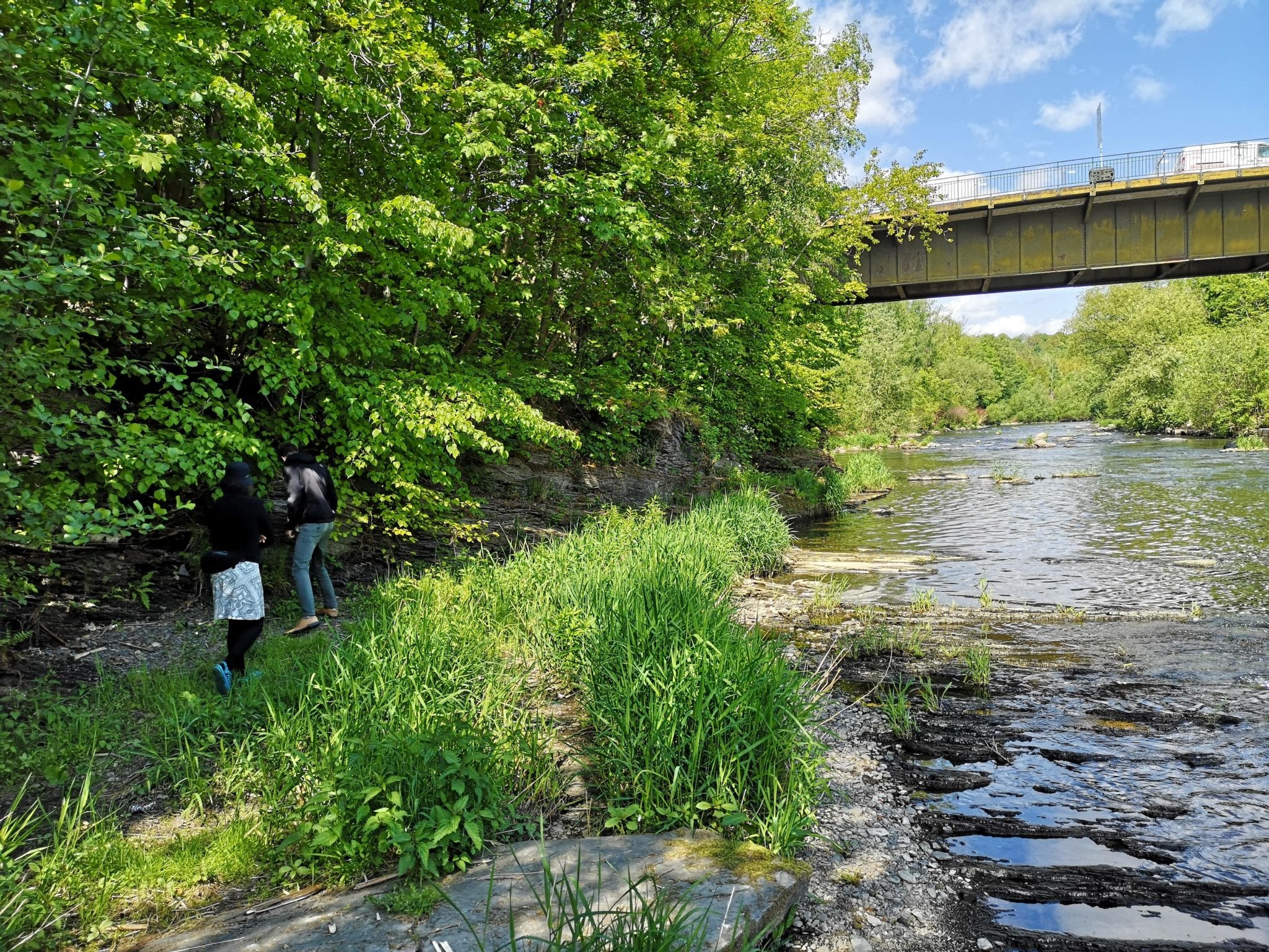 Wir fahren durch breite, aber leere Straßen, was wohl vor allem an der sonntäglichen Mittagszeit liegen dürfte. Nach dem obligatorischen Blick ins Zentrum mit dem Marktplatz geht es an den Stadtrand. In einem der vielen Industriegebiete parken wir das Auto, um einen steilen Hang zum Muldeufer hinabzusteigen. Sebastian zeigt auf eine schwarze, glänzende Gesteinsschicht. Hier erblickt die Steinkohle das Tageslicht, die der Stadt Zwickau im Mittelalter einen wirtschaftlichen Aufschwung bescherte.