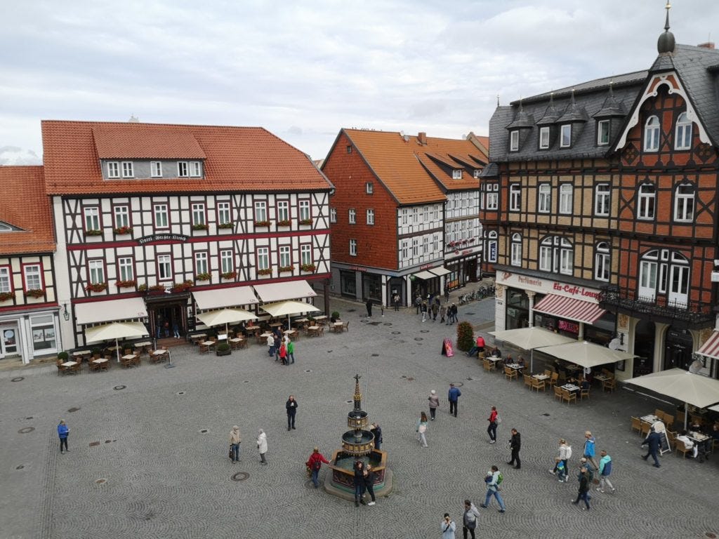 Als die Regenfront weitergezogen ist, steht die kurze Sightseeingtour durch die Altstadt von Wernigerode an. Den Auftakt bildet eine Stadtführung. Aber nicht der klassische Altstadtrundgang, der sich zeitgleich nur ein paar Meter neben uns sammelt, sondern eine Führung durch das alte Rathaus mit der historischen Figur des Baumeisters Hilleborch.