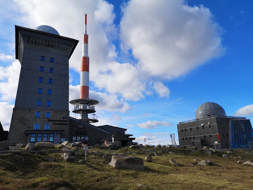 Auf dem letzten Stück verlassen wir den steilen und schönen Trail, der teilweise über große Gesteinsbrocken führt. Nun geht es die Brockenstraße hoch zum Gipfel. Corona-bedingt ist leider keine wirkliche Einkehr möglich, aber immerhin eine Imbissbude hat auf. Da es hier oben aber ordentlich pfeift, hält man es dann doch nicht allzu lange sitzend aus. Wir machen uns an den Abstieg, genießen aber noch mal die großartige 360° Aussicht bei Sonnenschein und bester Sicht.