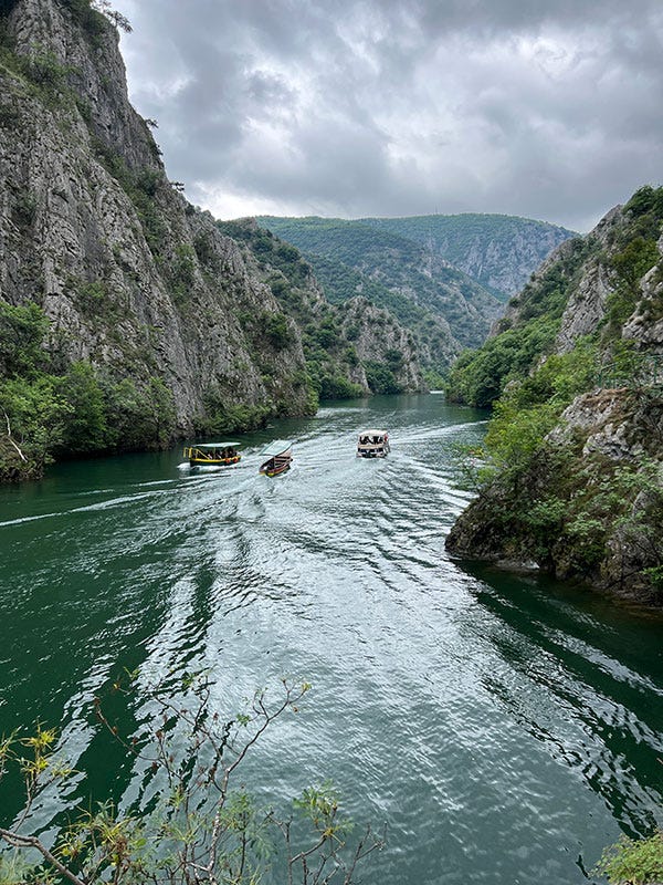 Tief beeindruckt hat Michi der Matka-Canyon ganz in der Nähe der nordmazedonischen Hauptstadt Skopie. Richtige „Drama-Felsen“ schneiden tief in die Landschaft ein und man blickt auf kristallklares smaragdgrünes Wasser. Eine perfekte Mischung aus Natur und Abenteuer, die so viel verschiedene Möglichkeiten bietet: Man kann am Ufer entlanglaufen, tolle Wanderungen unternehmen, Boot fahren oder die Gegend mit dem Kajak entdecken. Der perfekte Ausgleich zu Pristina!