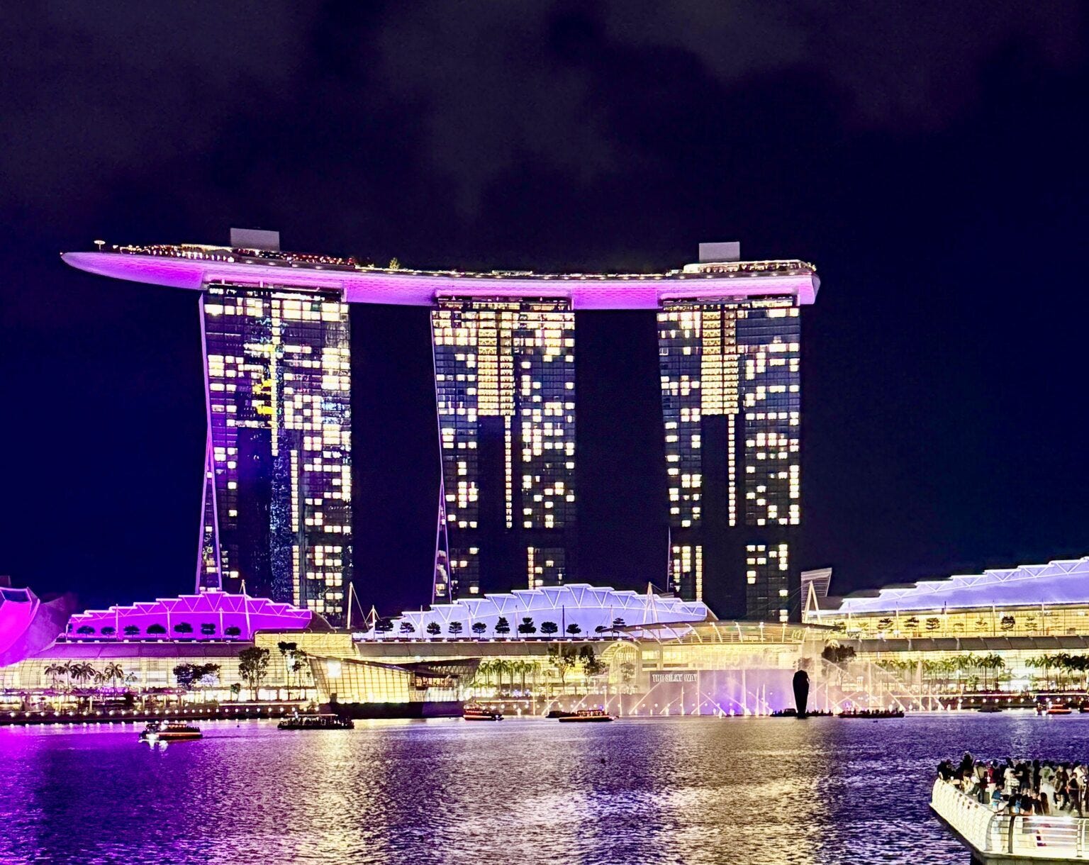 Singapur inszeniert sich nicht – es erzählt. Mit Beton, Glas, Wasser und Licht. Und wenn es Abend wird, verwandelt sich die Marina Bay in eine Szenerie aus warmen Farben, sanfter Musik und pulsierendem Leben.