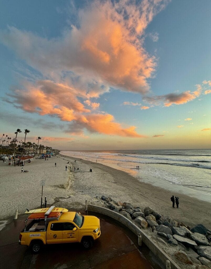 Zugegeben: Michaels Whalewatching-Tour hatte keinen einzigen Wal. Dafür gab’s Delfine. Und zwar hunderte. Die sprangen ums Boot, rasten durch die Wellen, surften mit der Bugwelle und tanzten im glitzernden Licht der kalifornischen Wintersonne. Michael hatte Tränen in den Augen. Oceanside selbst? Der Inbegriff von kalifornischem Beachlife. Der Pier – einer der längsten Holzstege der Westküste – ist Treffpunkt für Familien, Musiker, Spaziergänger, Eisliebhaber (Michael hat sich durch eine Kugel Vanille-Strawberry-Cheesecake-Krokant gekämpft). Und natürlich für Surfer, die im Abendlicht auf den perfekten Ride warten.