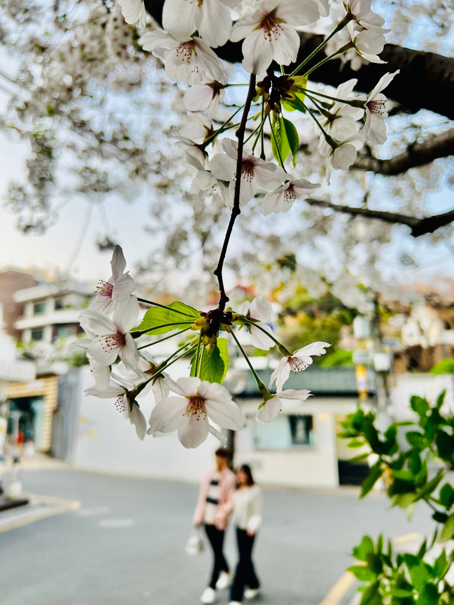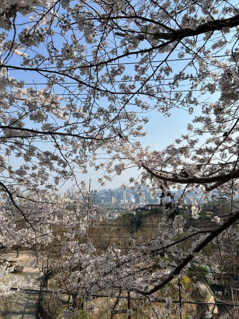 Michael hatte das Glück, zur Zeit der Kirschblüte in Seoul zu sein. Die hat er sich dann nach einer kleinen Wanderung in eines der naheliegenden Bergdörfer – etwa Bukchon Hanok – aus nächster Nähe angesehen. Das lohnt aber auch ohne Kirschblüte – dank schönster Natur, einem tollen Ausblick auf Seoul und kleinen, authentischen Restaurants etc., die man dort oben entdecken kann.