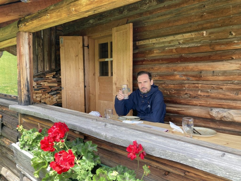 Am ersten Wandertag ist Jochen vor allem von der Kreuzwiesenalm in Lüsen beeindruckt, insbesondere von Senner Johannes und seiner kleinen Almkäserei mit acht Kühen. Raffinierte und teils ausgefallene Käsespezialitäten aus frischer Almmilch, mit Leidenschaft gefertigt – das schmeckt man, sagt Jochen. Ein Satz des diplomierten Käsesommeliers Johannes, der noch lange in Jochen nachgehallt hat, weil jeder sich darin in diversen Lebenssituationen wiederfinden kann: „Der Weg, den ich gehe, ist schön, aber nicht einfach.“
