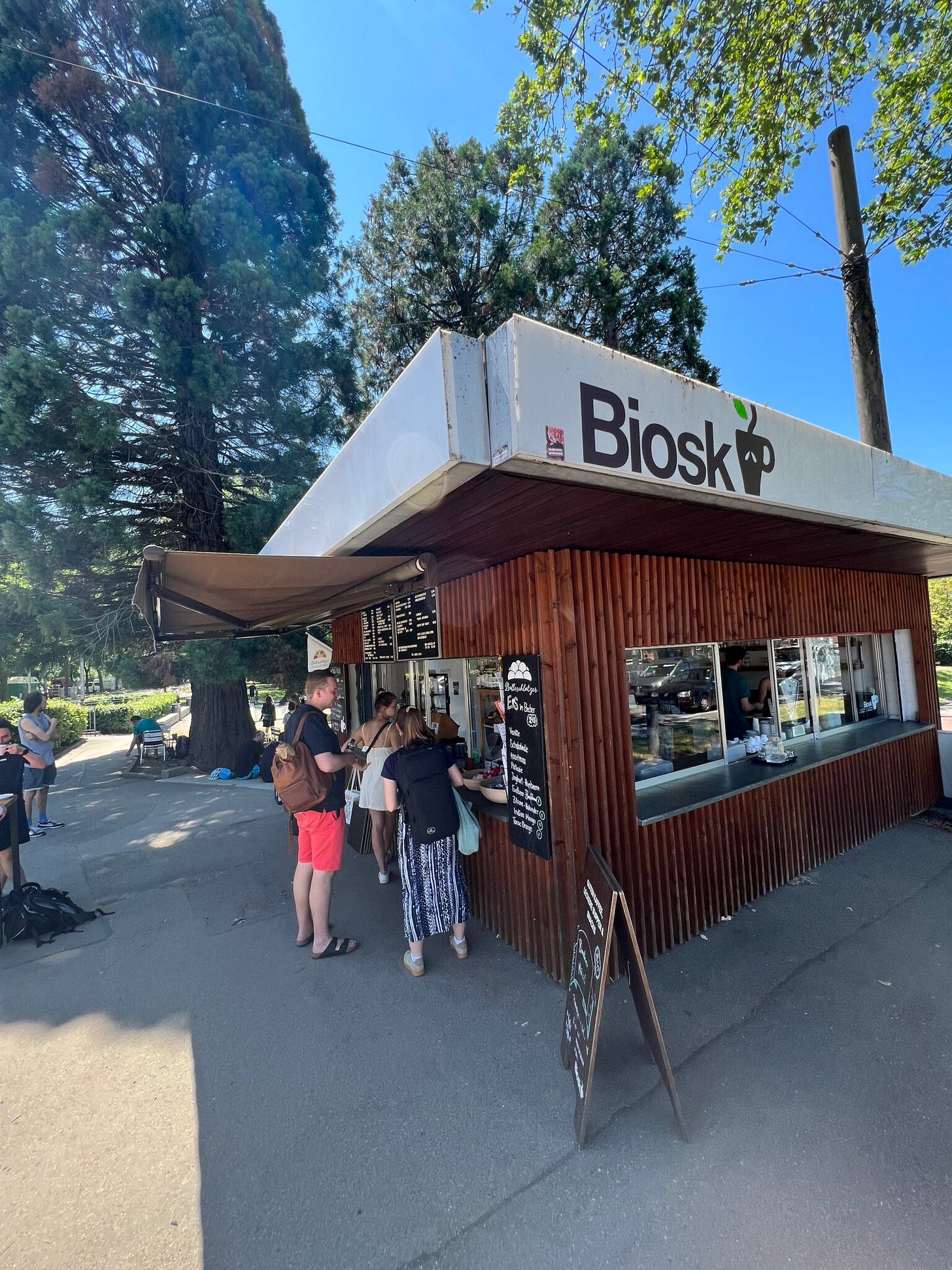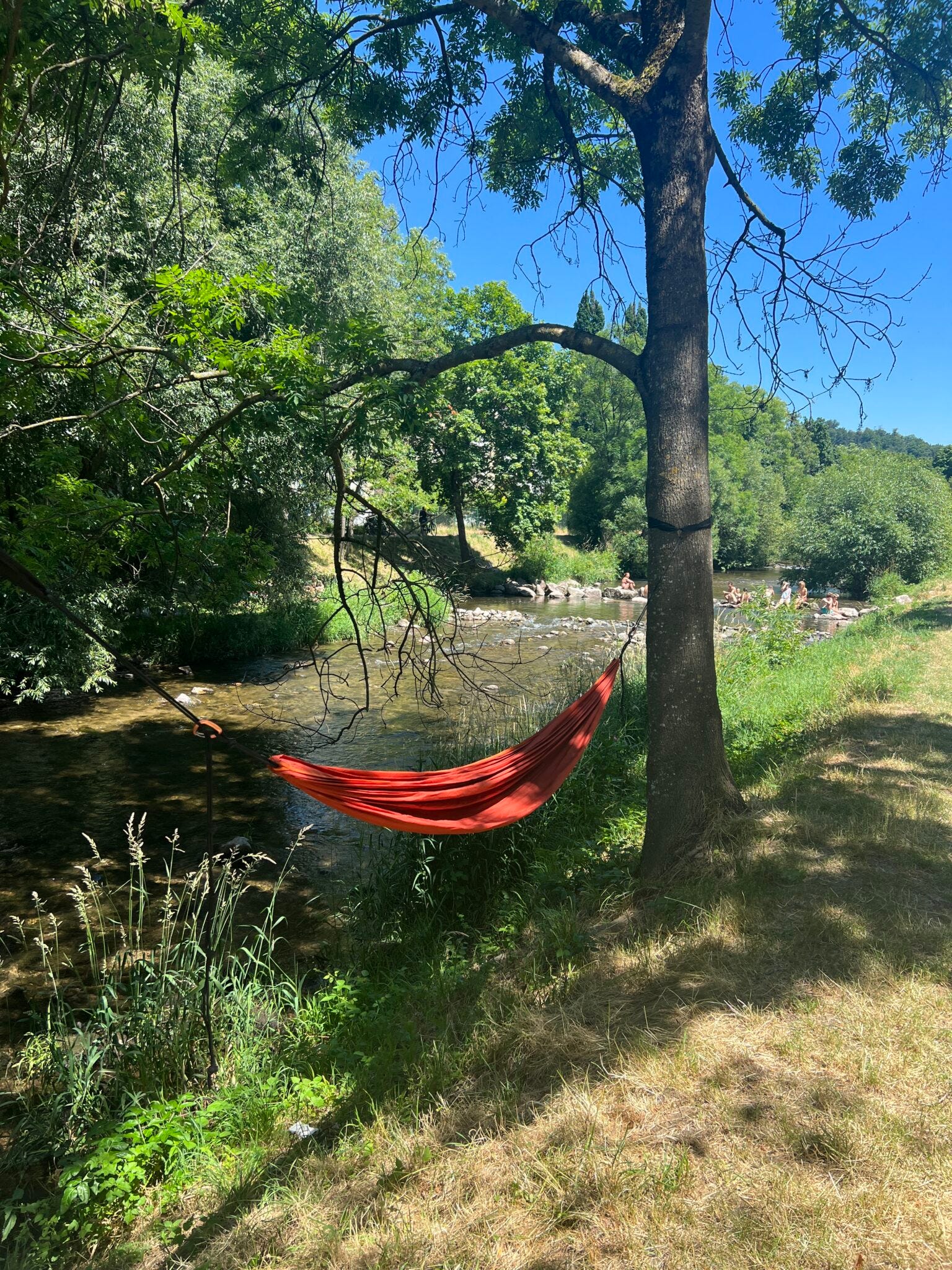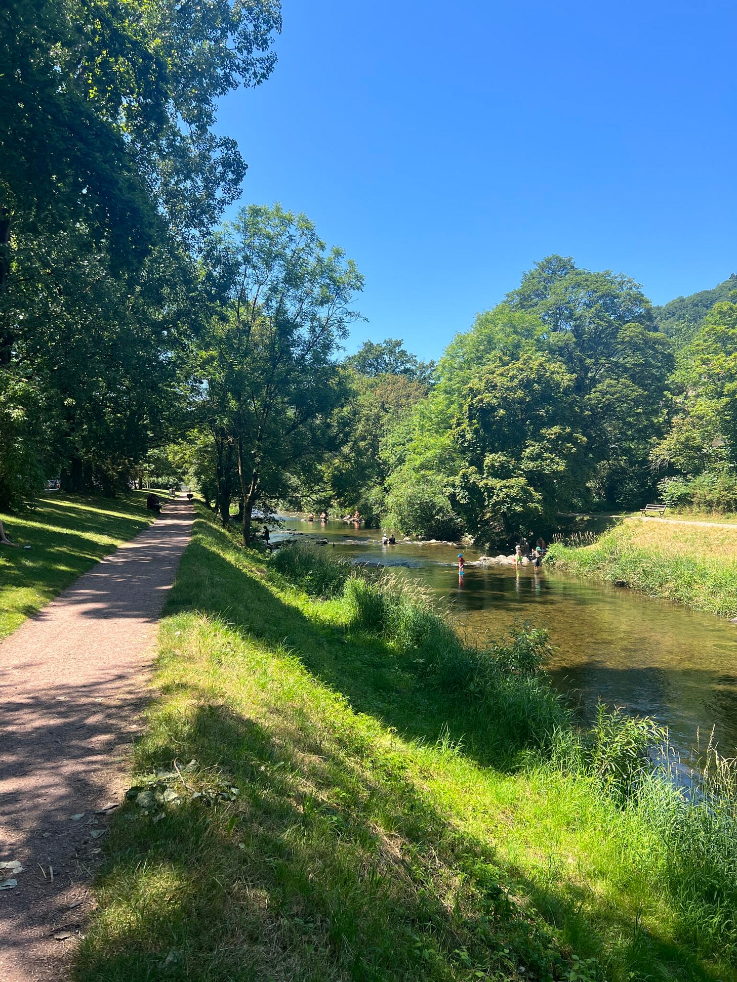 Michaels gemütliche Tour führte ihn unter anderem vorbei am Waldsee. In der Gaststätte am See fand gerade eine Jazzmatinée unter freiem Sommerhimmel statt. Ausgiebig gerastet wurde aber erst am „Biosk“ – mit deftigem Zwiebelkuchen. Ordentlich gestärkt ging es dann noch ein Weilchen weiter durch den Wald, bis der Weg irgendwann wieder die Dreisam kreuzte. An dieser Stelle des Flusses kann man nach Belieben (sonnen-)baden – egal ob mit oder ohne Badebekleidung.
