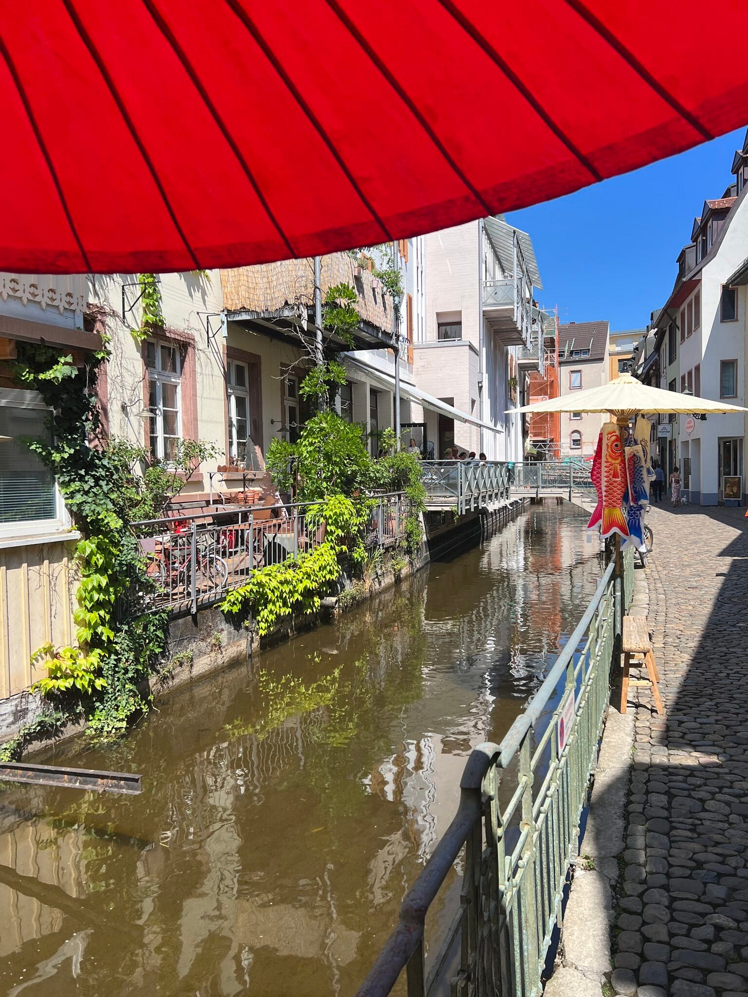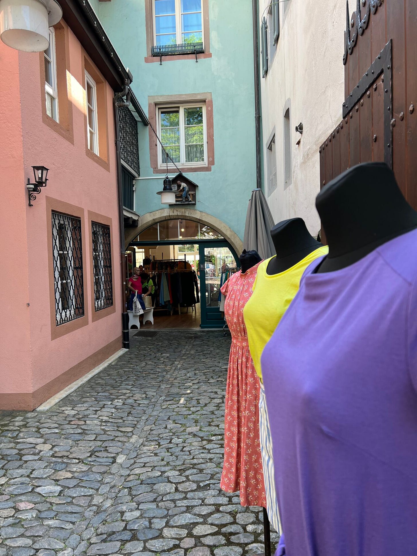 Die Schneckenvorstadt wird oft als „Klein-Venedig“ bezeichnet. Denn hier gibt es besonders viele kleine Kanäle der Dreisam, schmale Gassen und hübsche alte Häuser. Beim Herumschlendern ist Michael auf einen schönen Hinterhof gestoßen und hat sich hier erstmal einen Kaffee schmecken lassen. Dabei hat er Ulrike kennengelernt, die in ebendiesem Hinterhof eine kleine Boutique namens Blickfang hat – mit fairer Mode für Frauen.