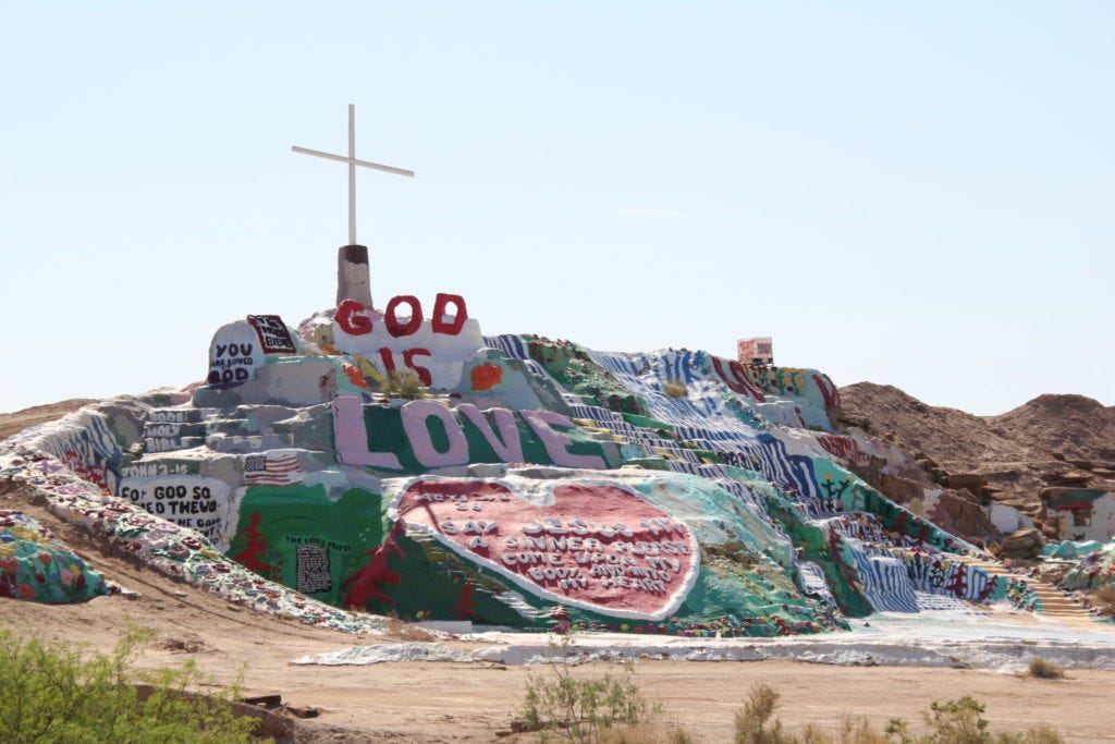 Raus aus Los Angeles gen Osten, nächster Stop Niland. Eine Fahrt von drei Stunden, und in dieser verhältnismäßig kurzen Zeit findet man sich schon mitten in die Wüste wieder, mit Tagestemperaturen von bis zu 50° C. Das ist auch der Grund dafür, dass Jochen sich sehr früh von seiner Übernachtungsmöglichkeit in Niland auf den Weg gemacht hat. Wohin? An einen der vielleicht speziellsten Orte überhaupt: Slab City. Eine Art Kommune für Aussteiger*innen, Künstler*innen, Freigeister mitten im Nichts. Eine gänzlich andere, alternative Art zu leben und deshalb irgendwann auch popkulturell relevant geworden. Dabei nicht zu vergessen: Hier leben Menschen. Einige davon mit bewegenden Lebensgeschichten, die sie an diesen Ort geführt haben. Ein Besuch in Slab City sollte also – im Grunde wie immer – vor allem von Respekt geprägt sein. Dann wartet ein wirklich einmaliges Erlebnis an dessen Ende genau das steht, was den Aufenthalt in Slab City absolut passend beschreibt: „Caution – Reality Ahead“.