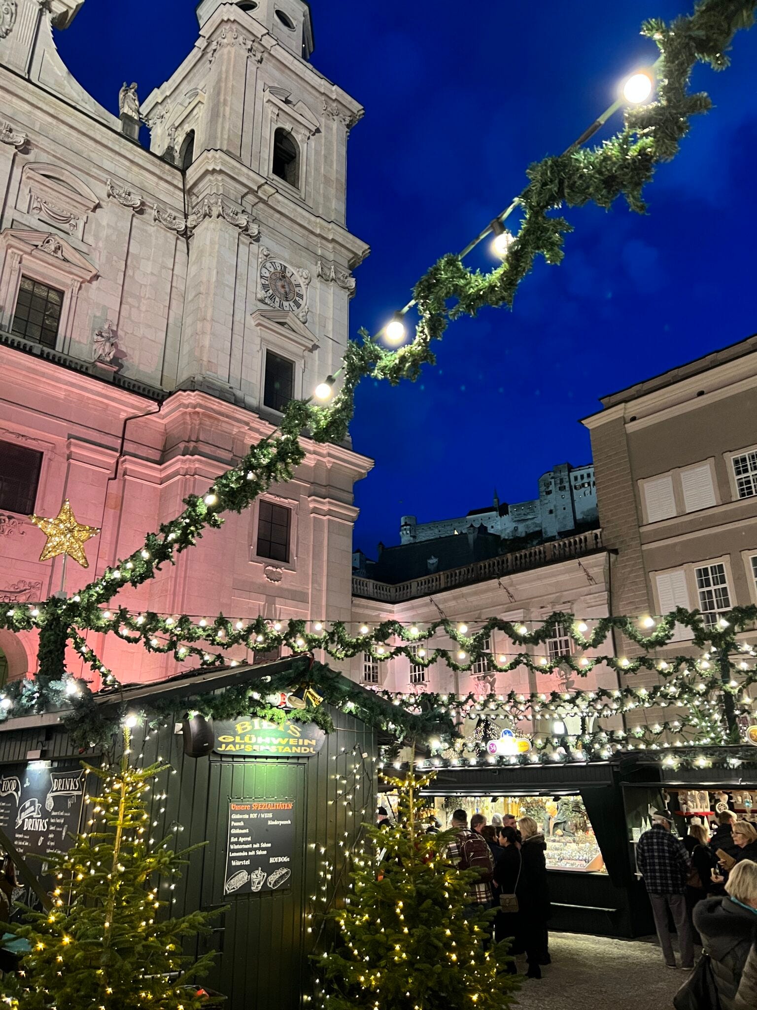 Auch in Salzburg gilt: Weihnachtsmärkte sind im Dunkeln am schönsten, denn im Dunkeln ist gut Funkeln. Jochens Favorit ist der Weihnachtsmarkt auf der Festung Hohensalzburg: wenige, aber wunderschöne und ausgewählte Buden, an denen man Besonderes findet. Außerdem bietet sich von dort oben ein wunderbarer Blick auf das weihnachtlich glitzernde Salzburg.